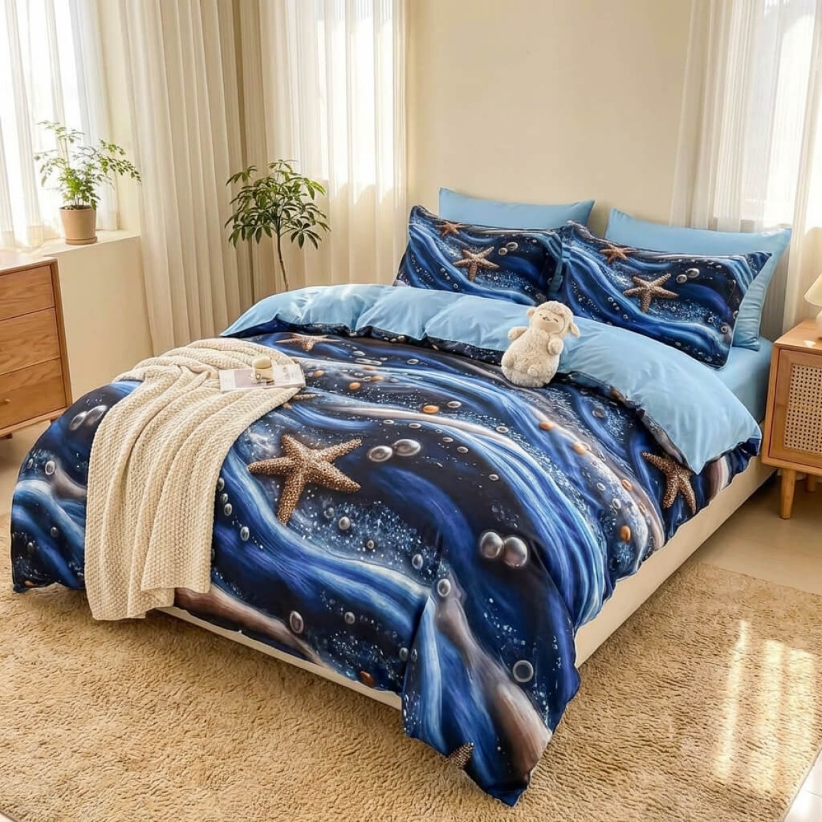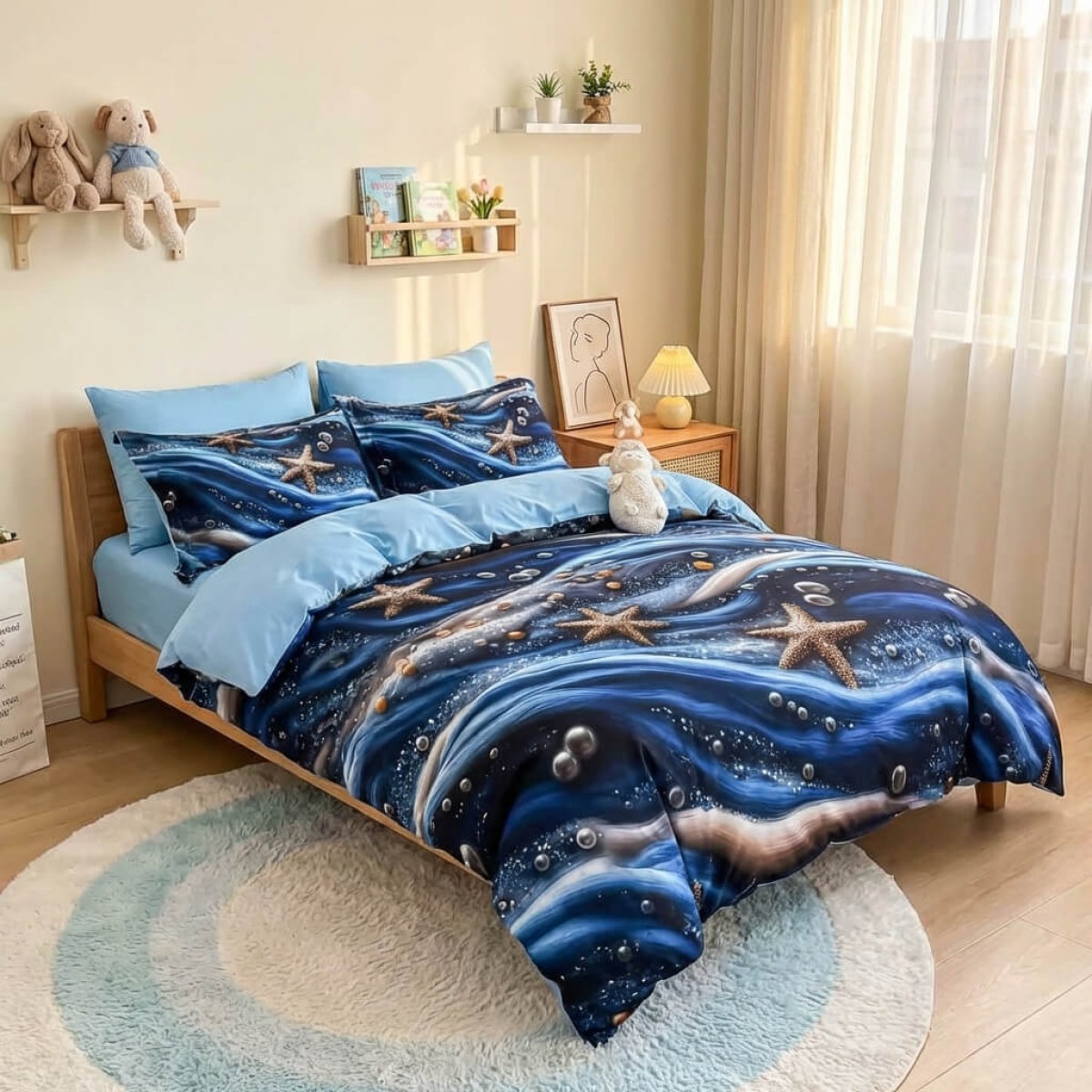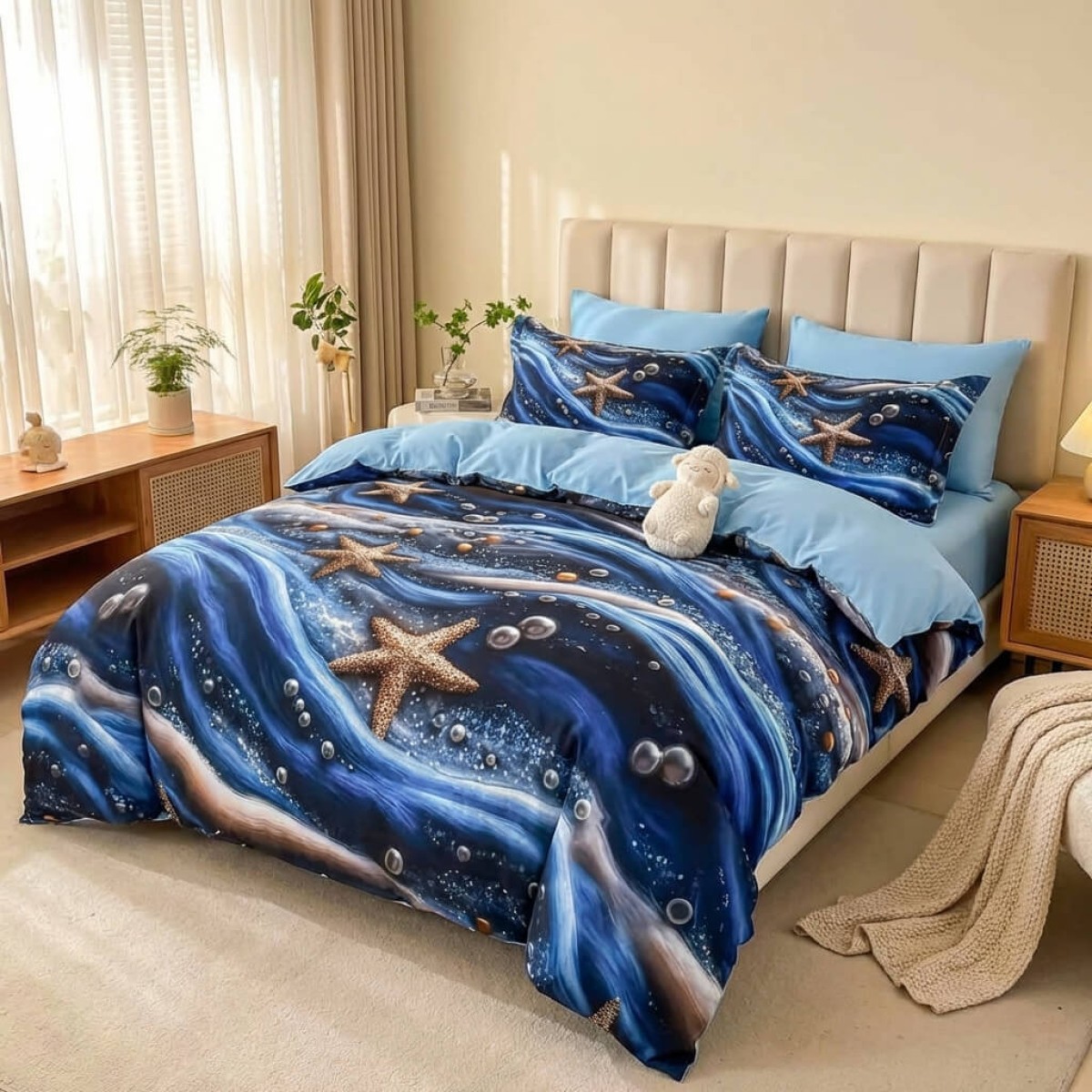 5D спален комплект чаршафи- Морско дъно, от 6 части с ластик