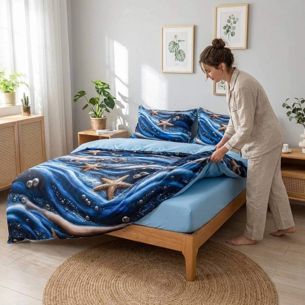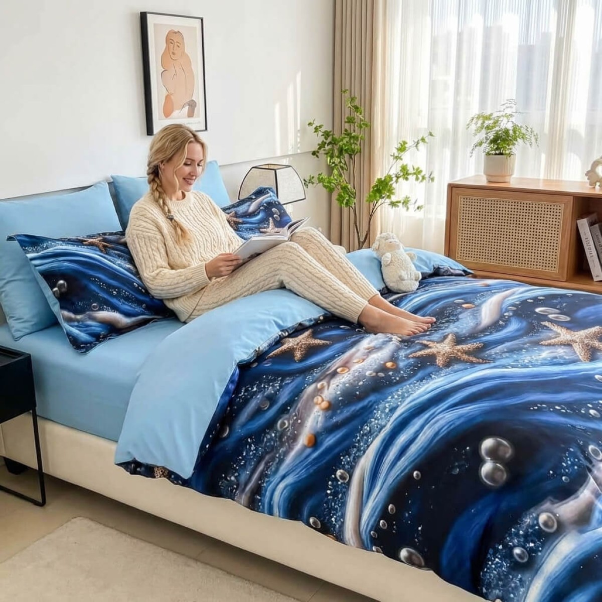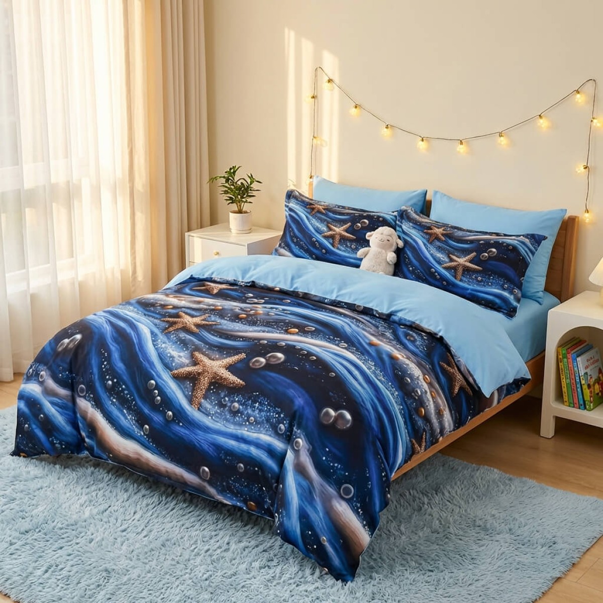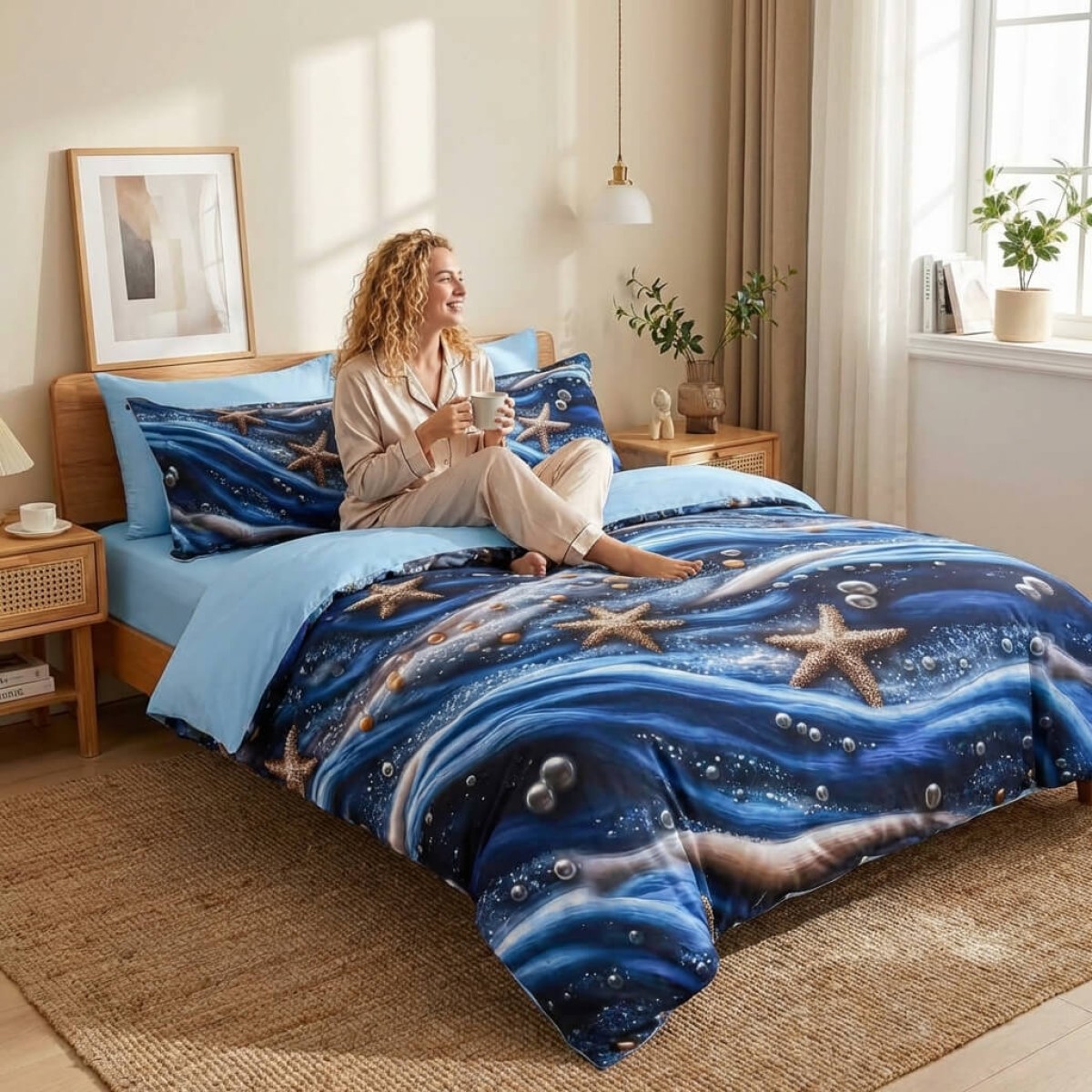 5D спален комплект чаршафи- Морско дъно, от 6 части с ластик