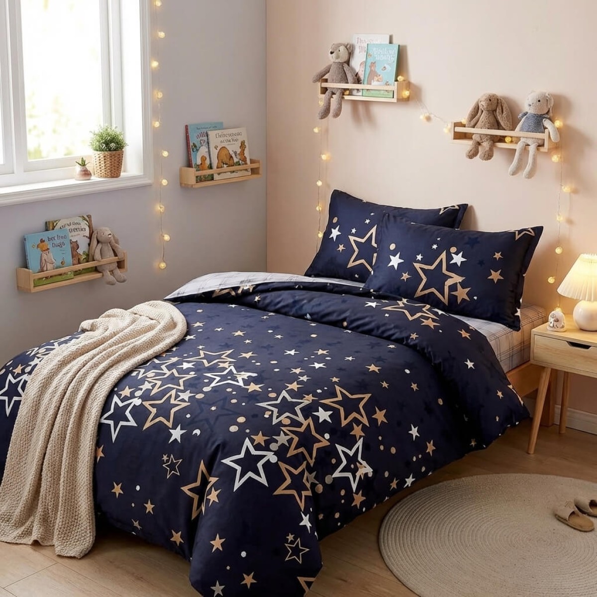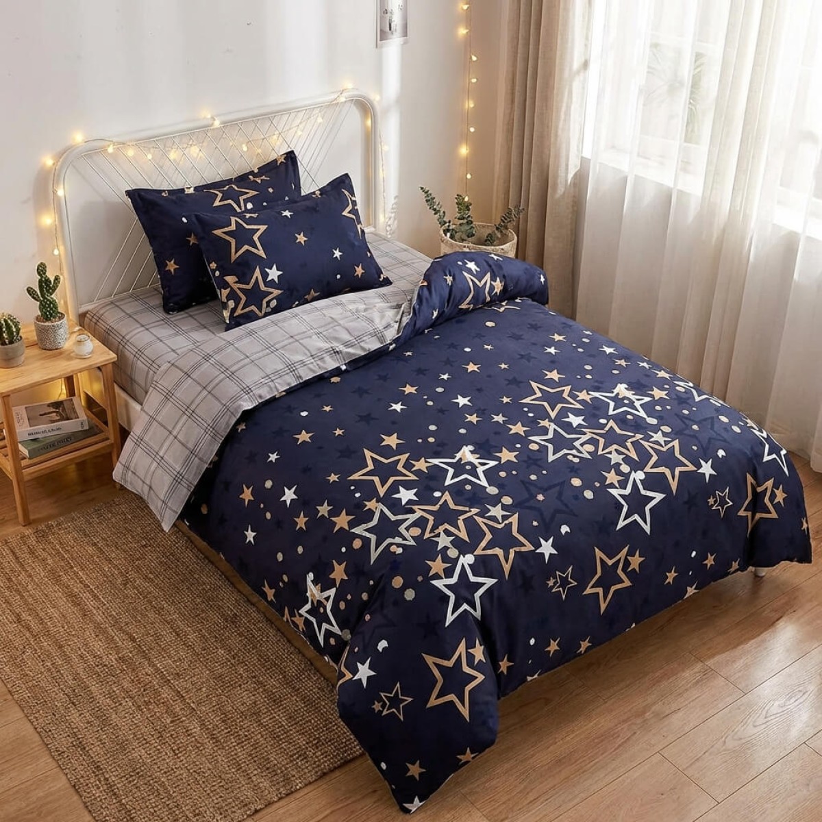 Спален комплект чаршафи за единично легло, от 4 части - Звездички