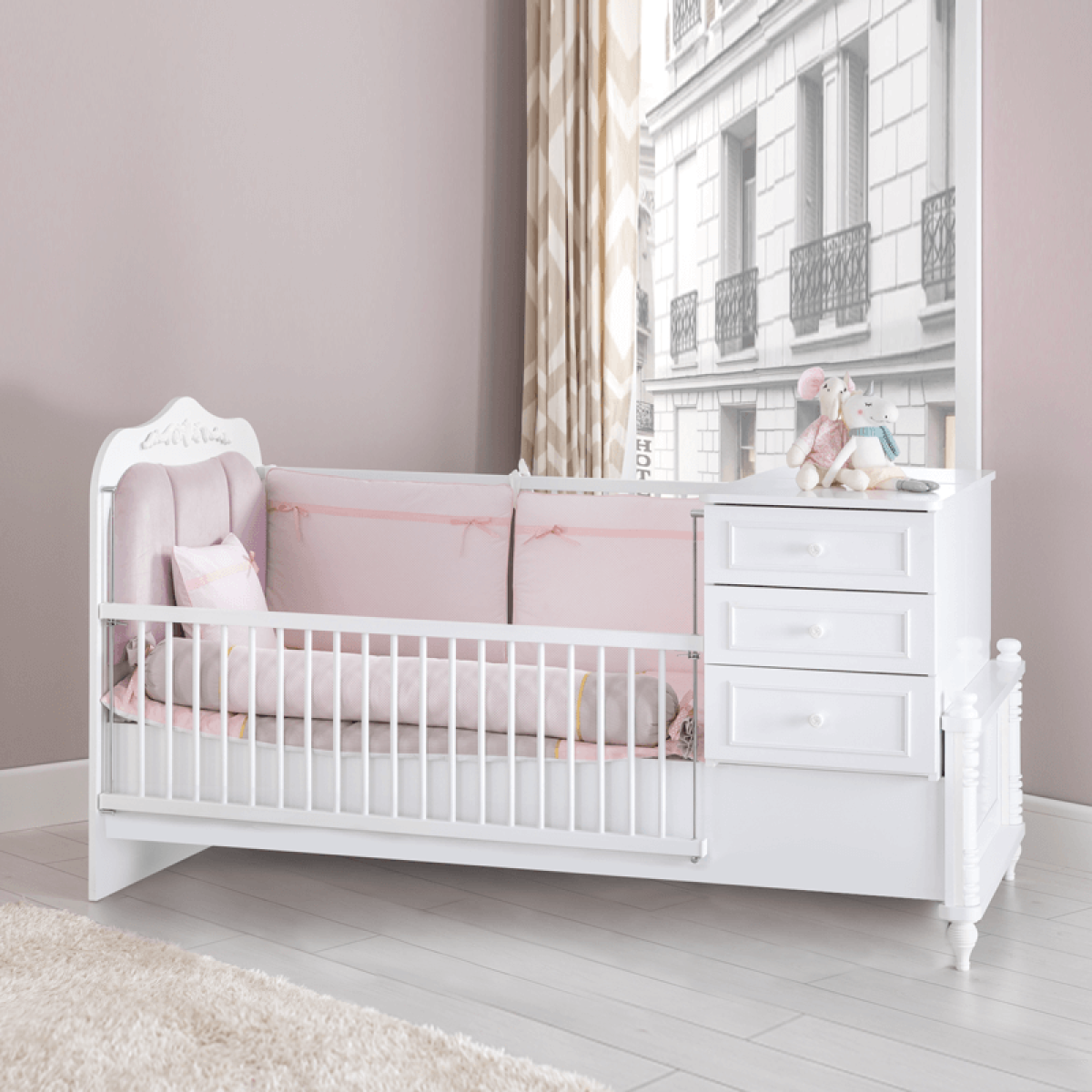 Бебешка кошара и детско легло 2в1 NIL 80 х 180 см - бяла