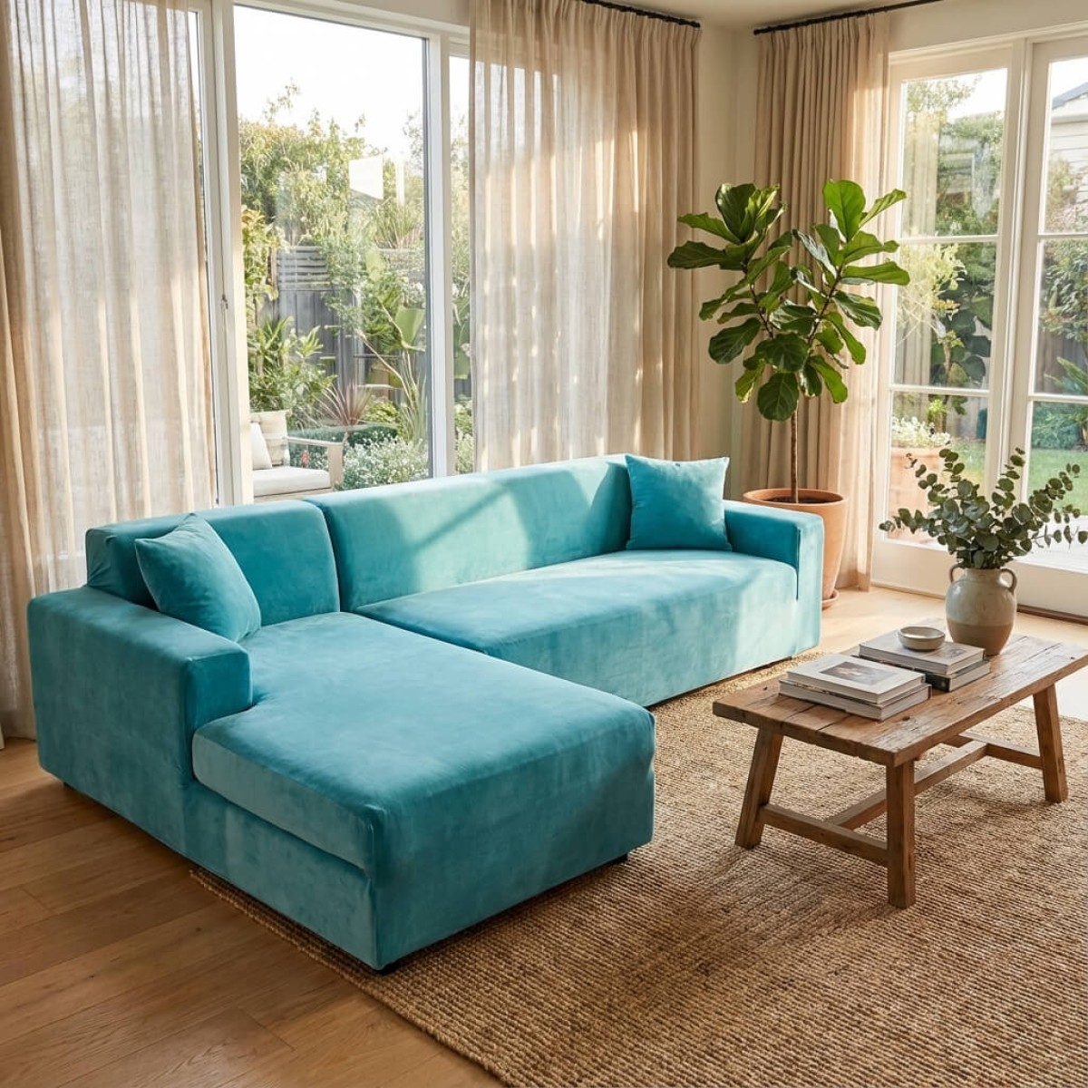 Покривалото пасва и за ляв ъглов диван и за десен ъглов диван.