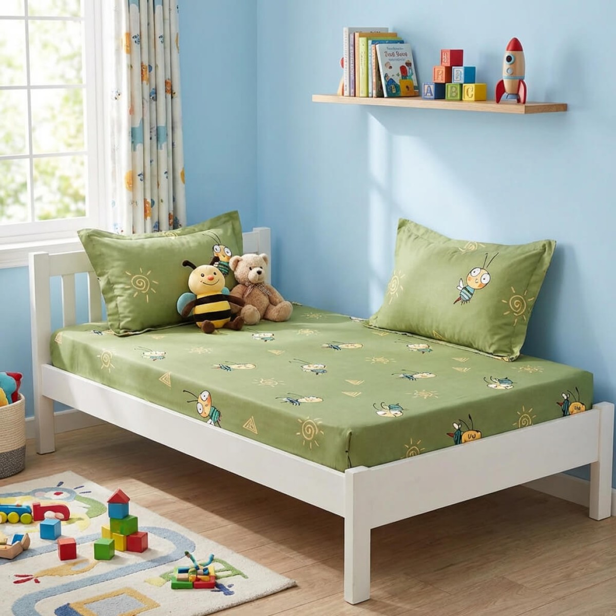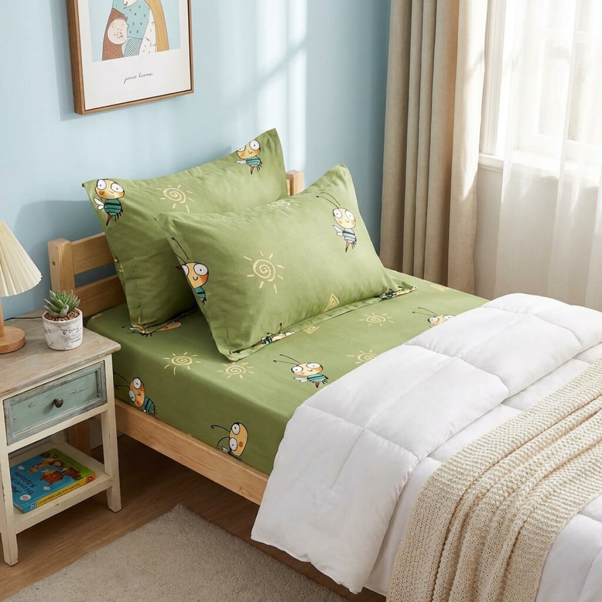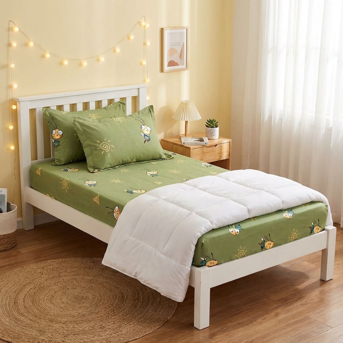 Единичен комплект чаршафи с ластик от 3 части, Грас