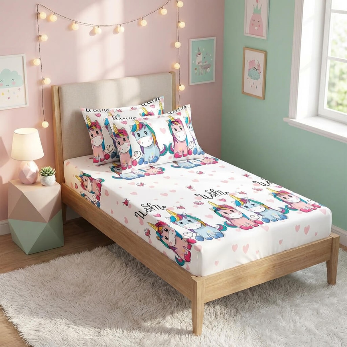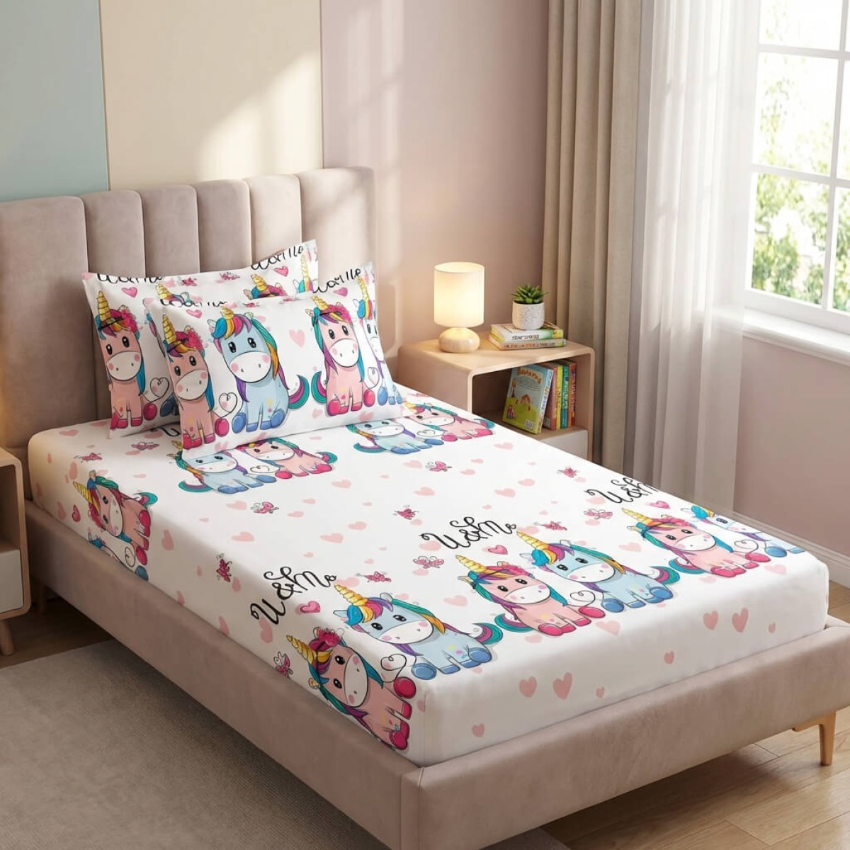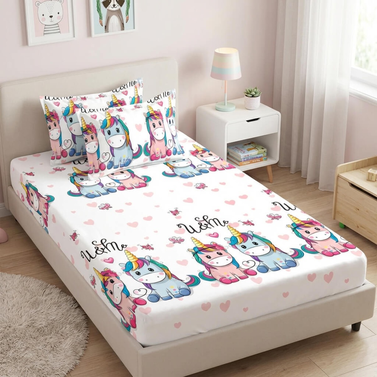 Единичен комплект чаршафи с ластик от 3 части, Емели