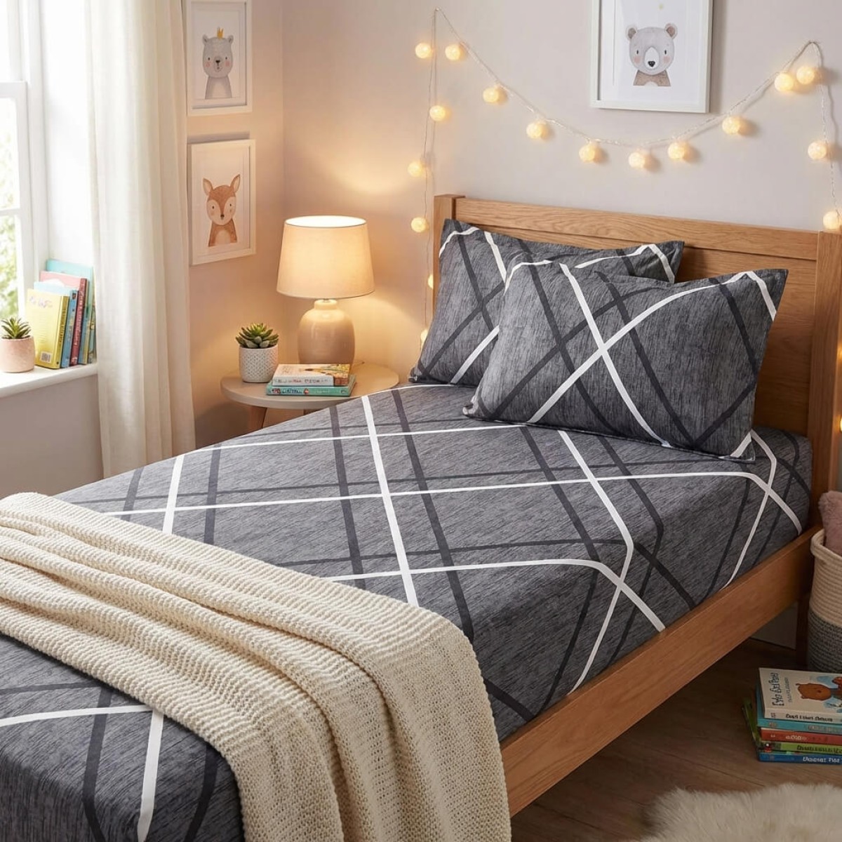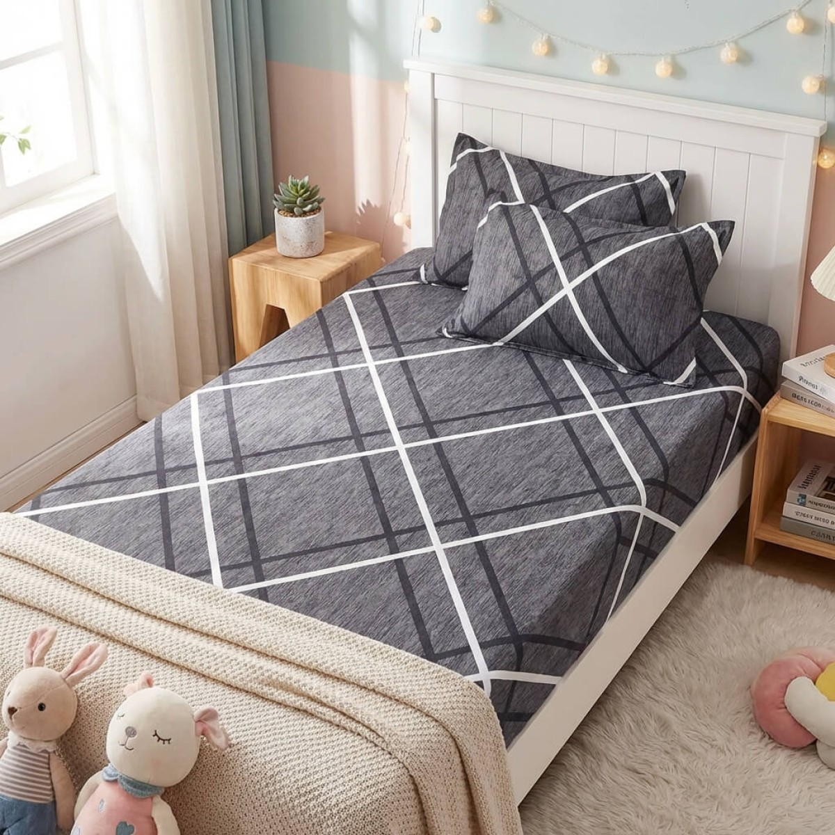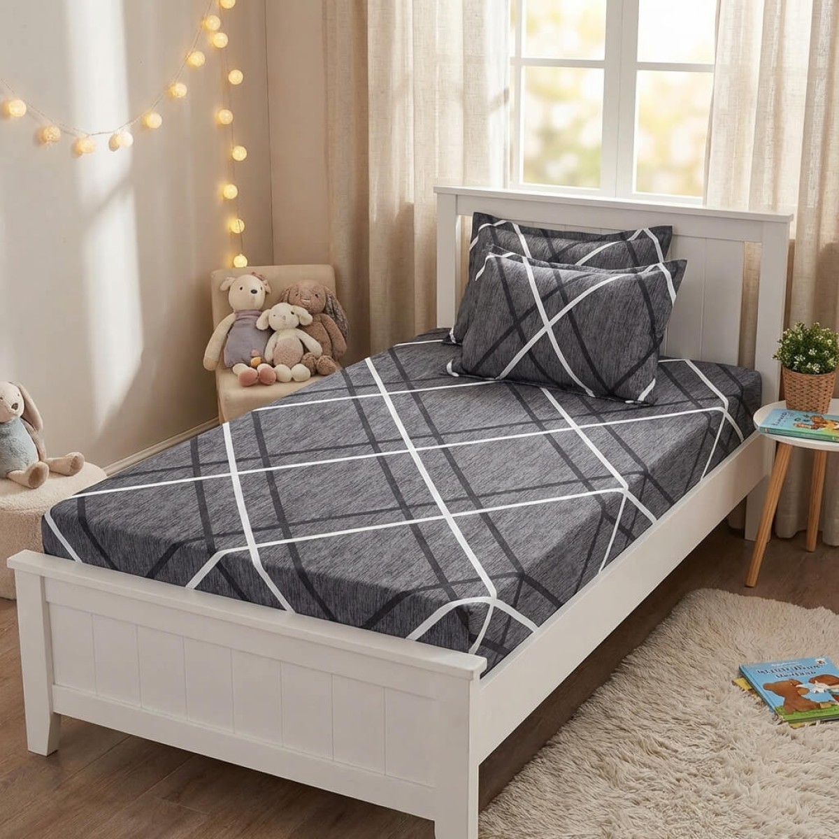 Единичен комплект чаршафи с ластик от 3 части, Иви
