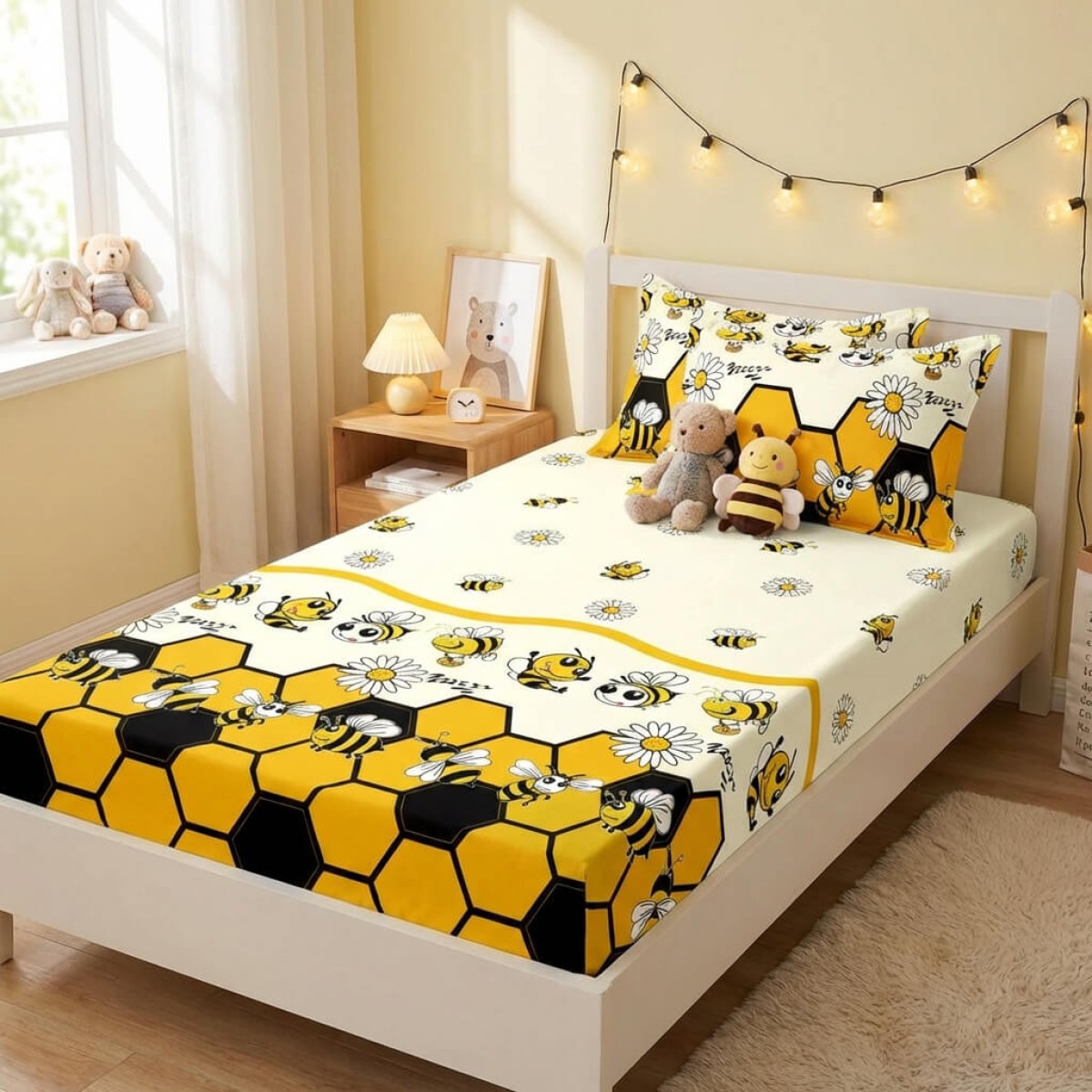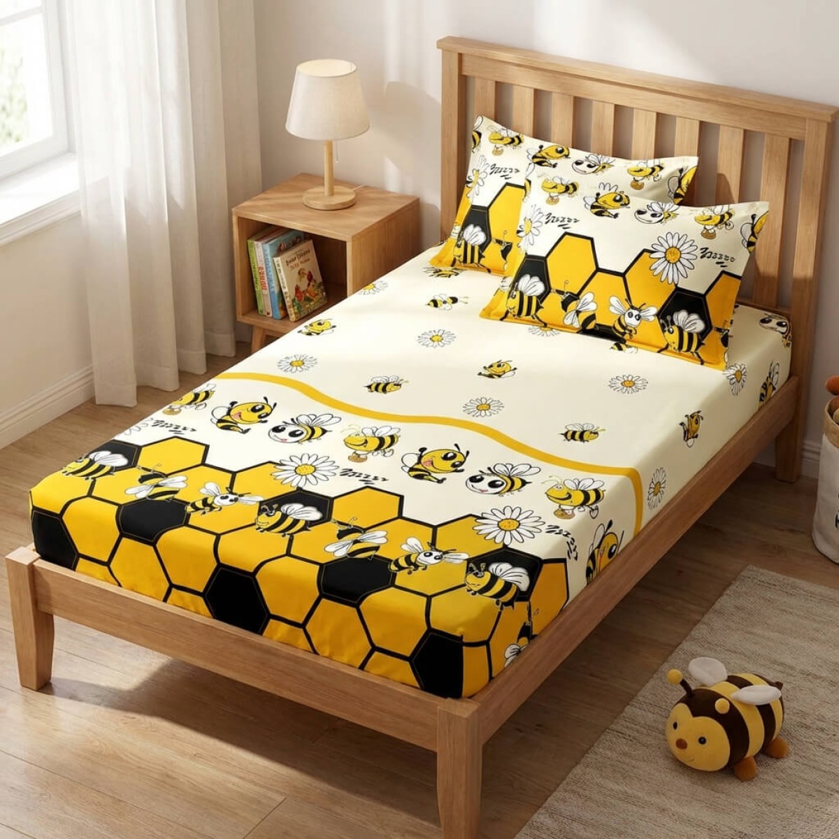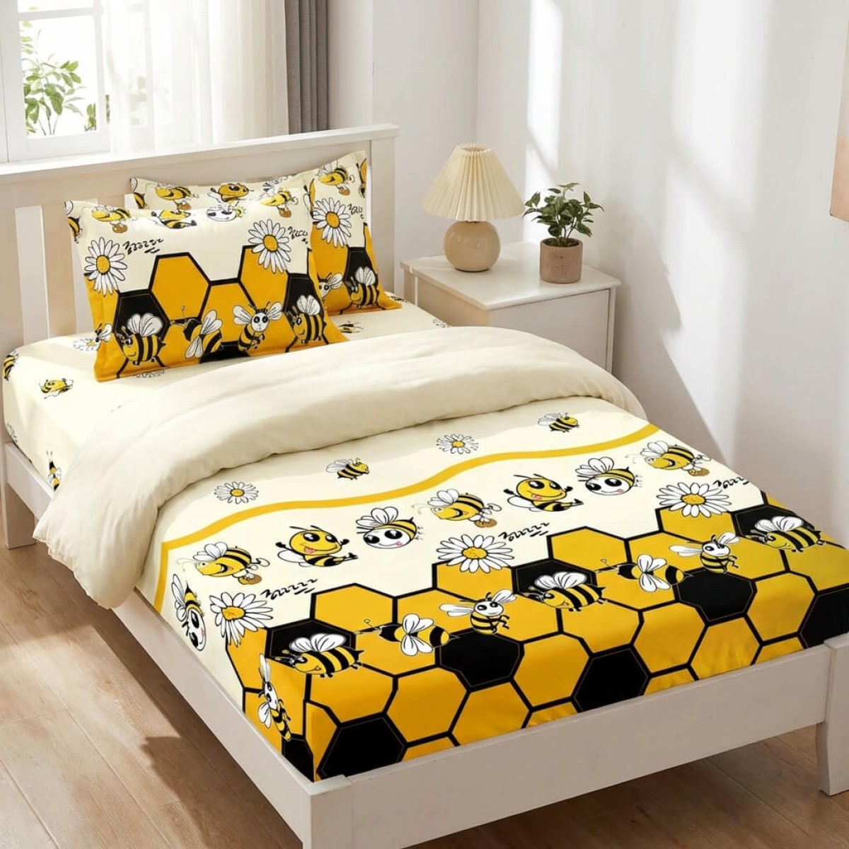 Единичен комплект чаршафи с ластик от 3 части, Пчелички
