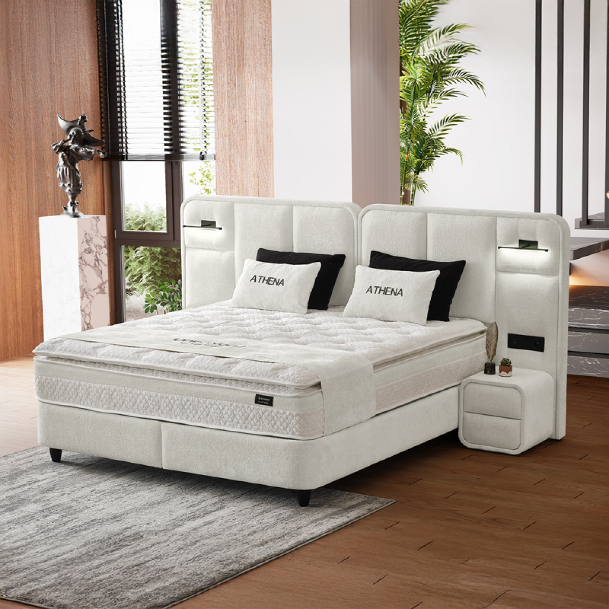 Тапицирана спалня с матрак ATHENA 160 х 200 - слонова кост SY