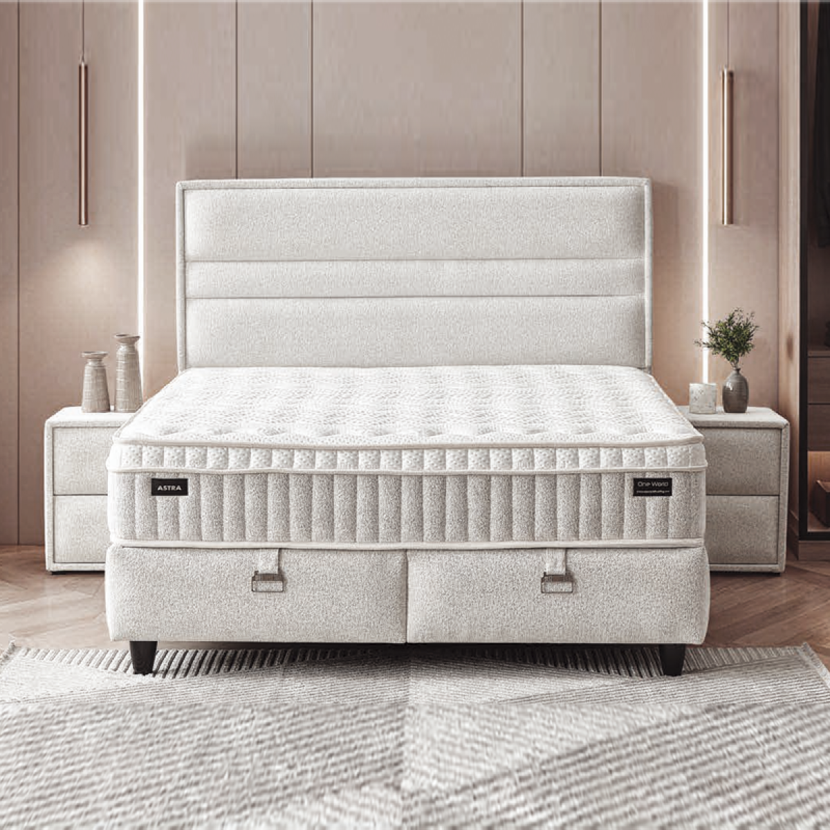 Тапицирана спалня с матрак ASTRA 180 x 200 - перла SY
