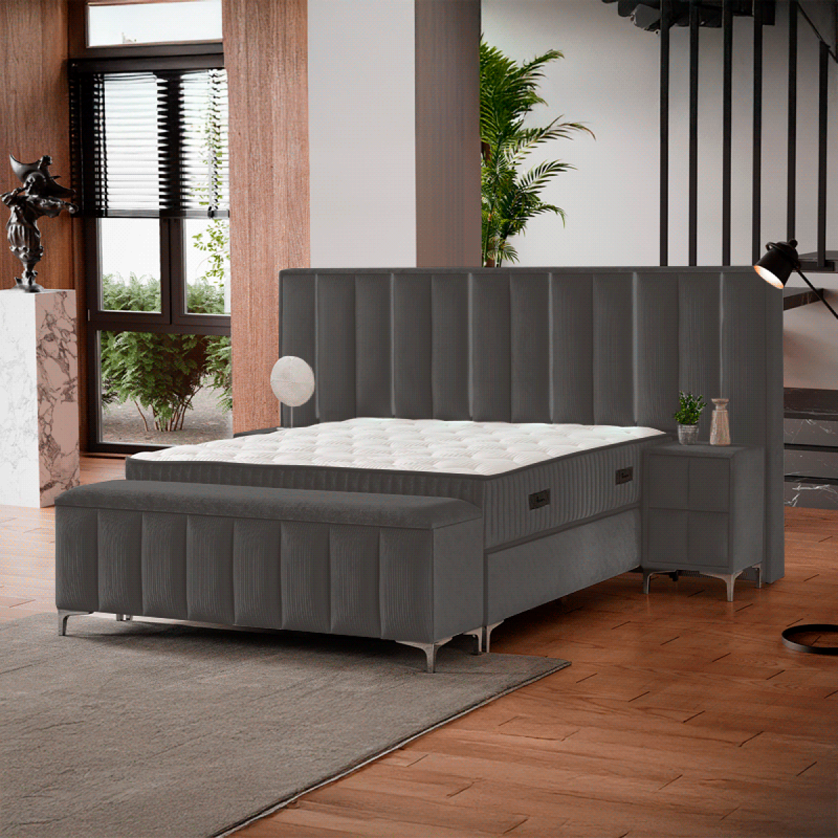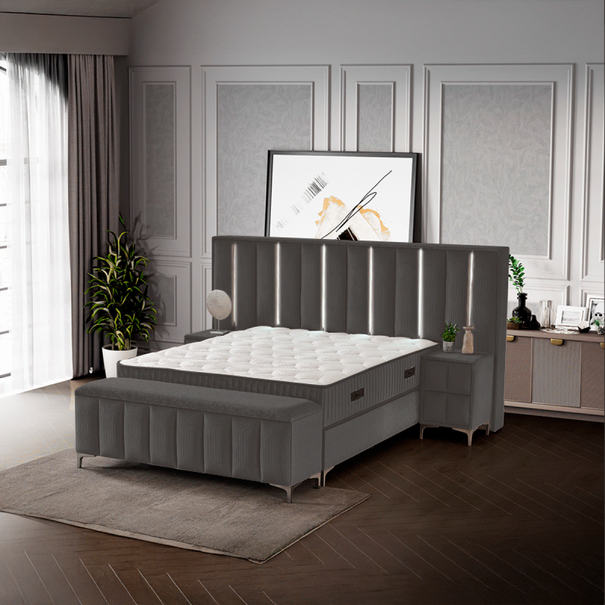 Тапицирана спалня с матрак MOONLIGHT 180 x 200 - сив 190