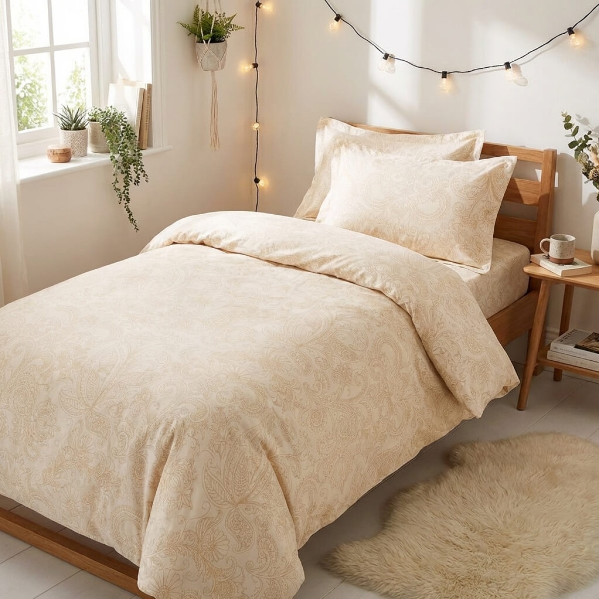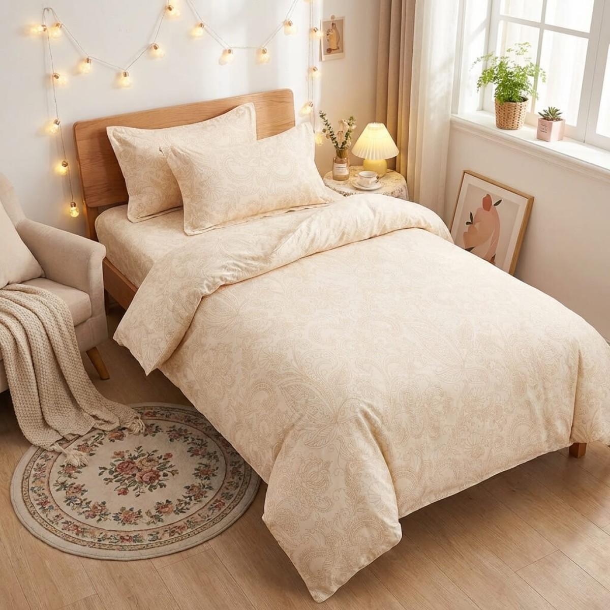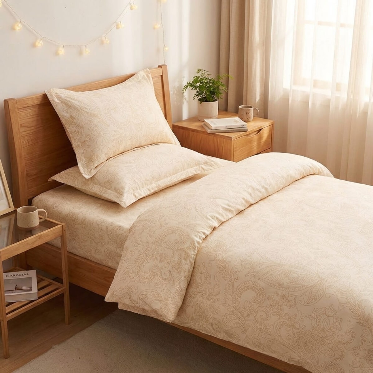 Спален комплект чаршафи за единично легло, от 4 части - Крем