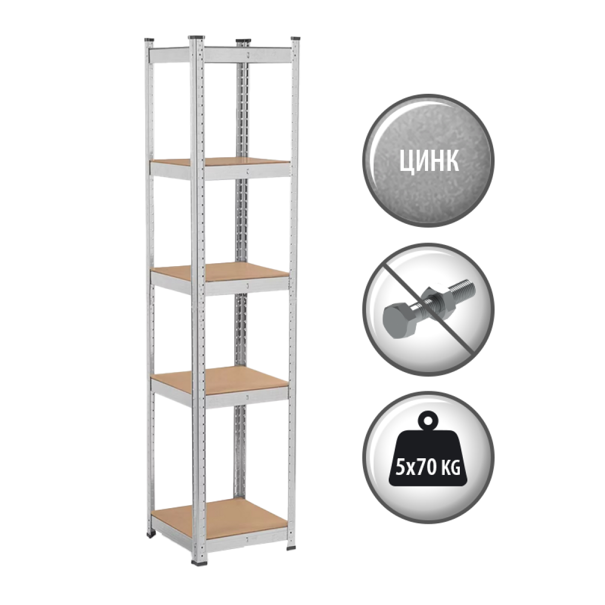 Метален стелаж Carmen CR-1022, 180x40x40 см, до 70 кг на рафт - цинк