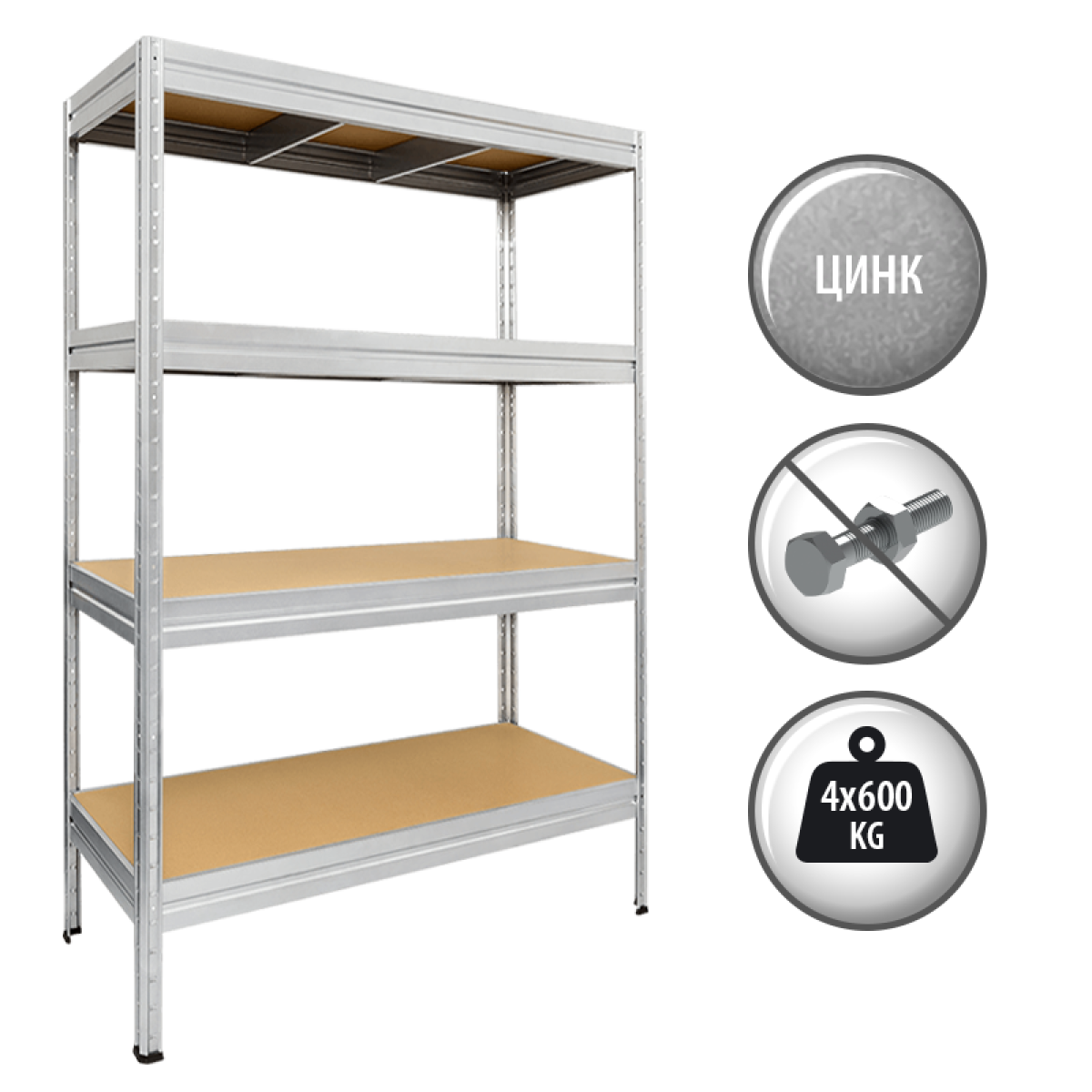Метален стелаж Carmen CR-1024-1, 180x120x60 см, до 600 кг на рафт - цинк
