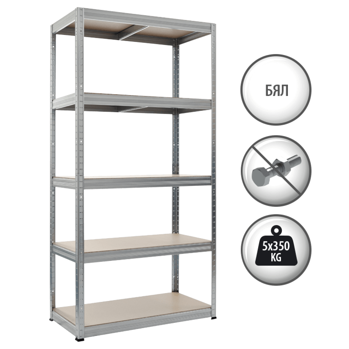Метален стелаж STAR 180х90х35 см, до 350 кг на рафт - бял