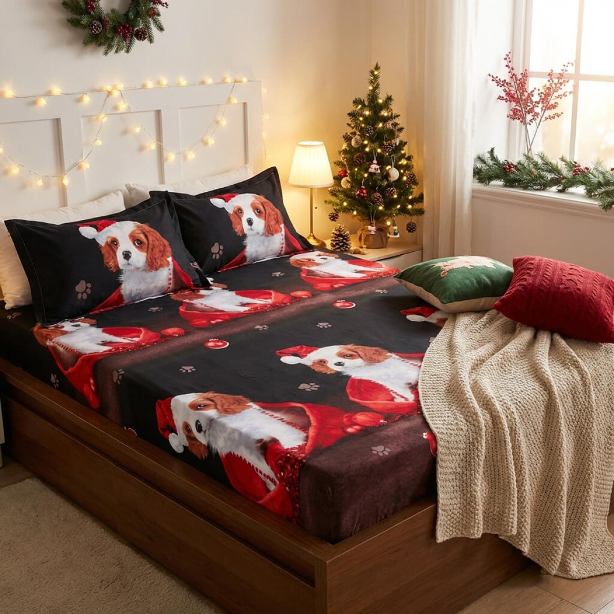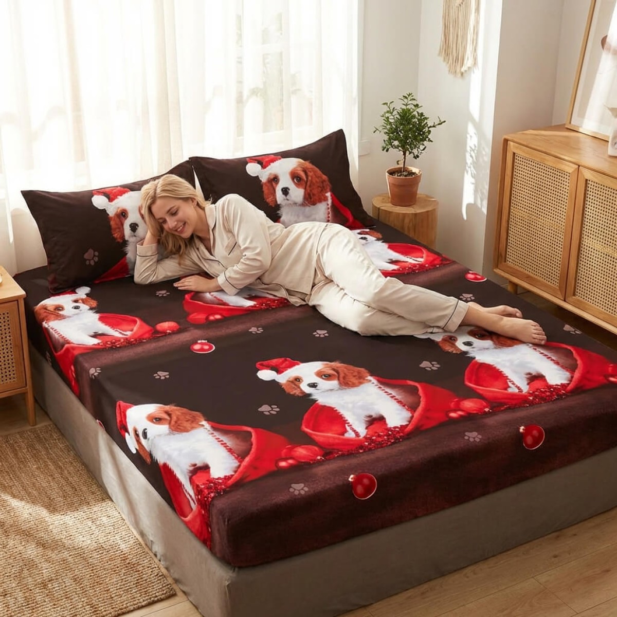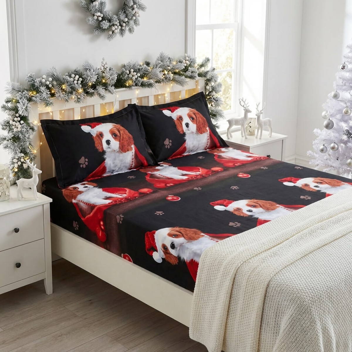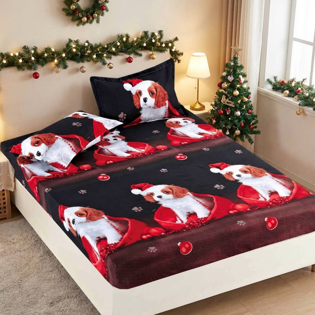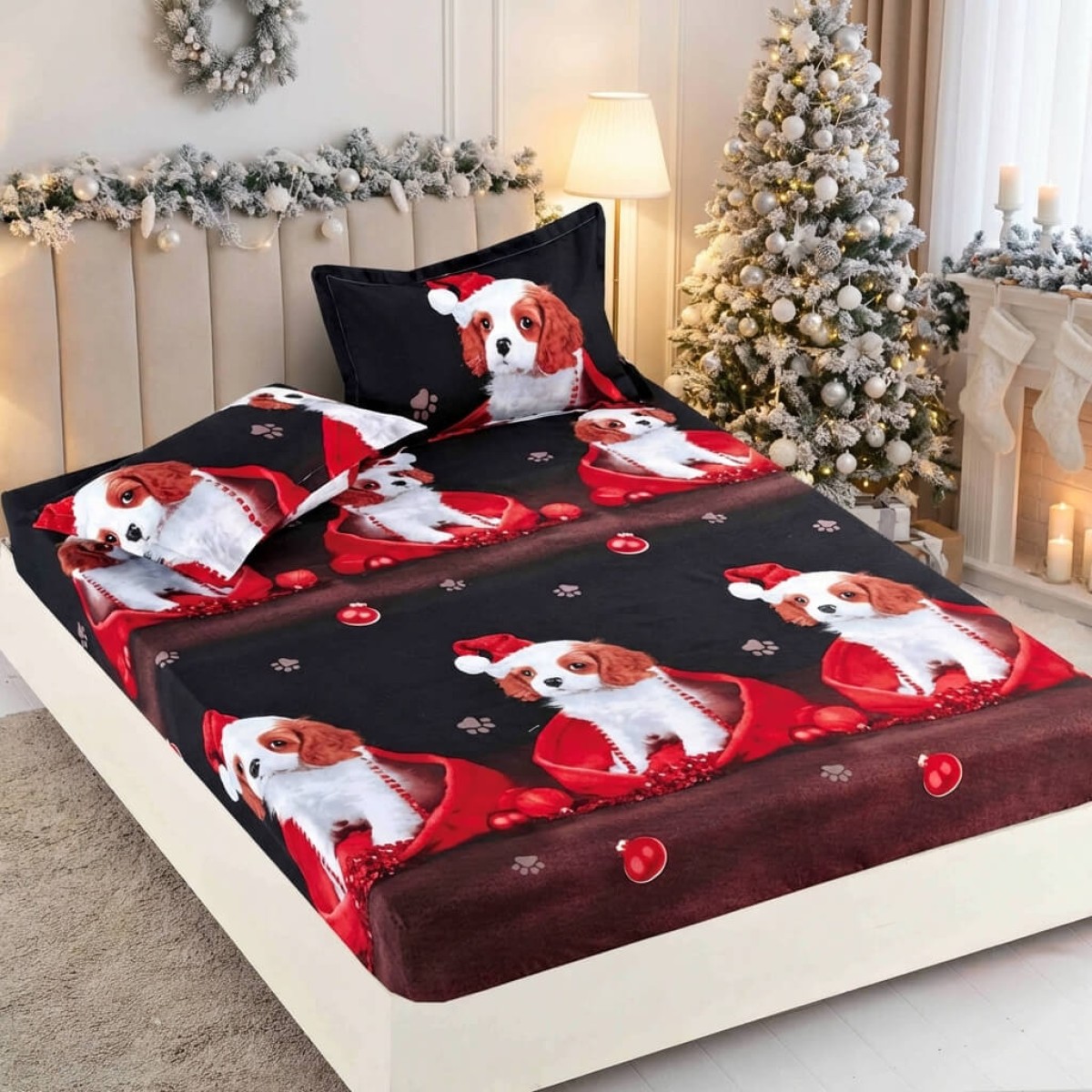 Спален комплект чаршафи с ластик от 3 части, Доги
