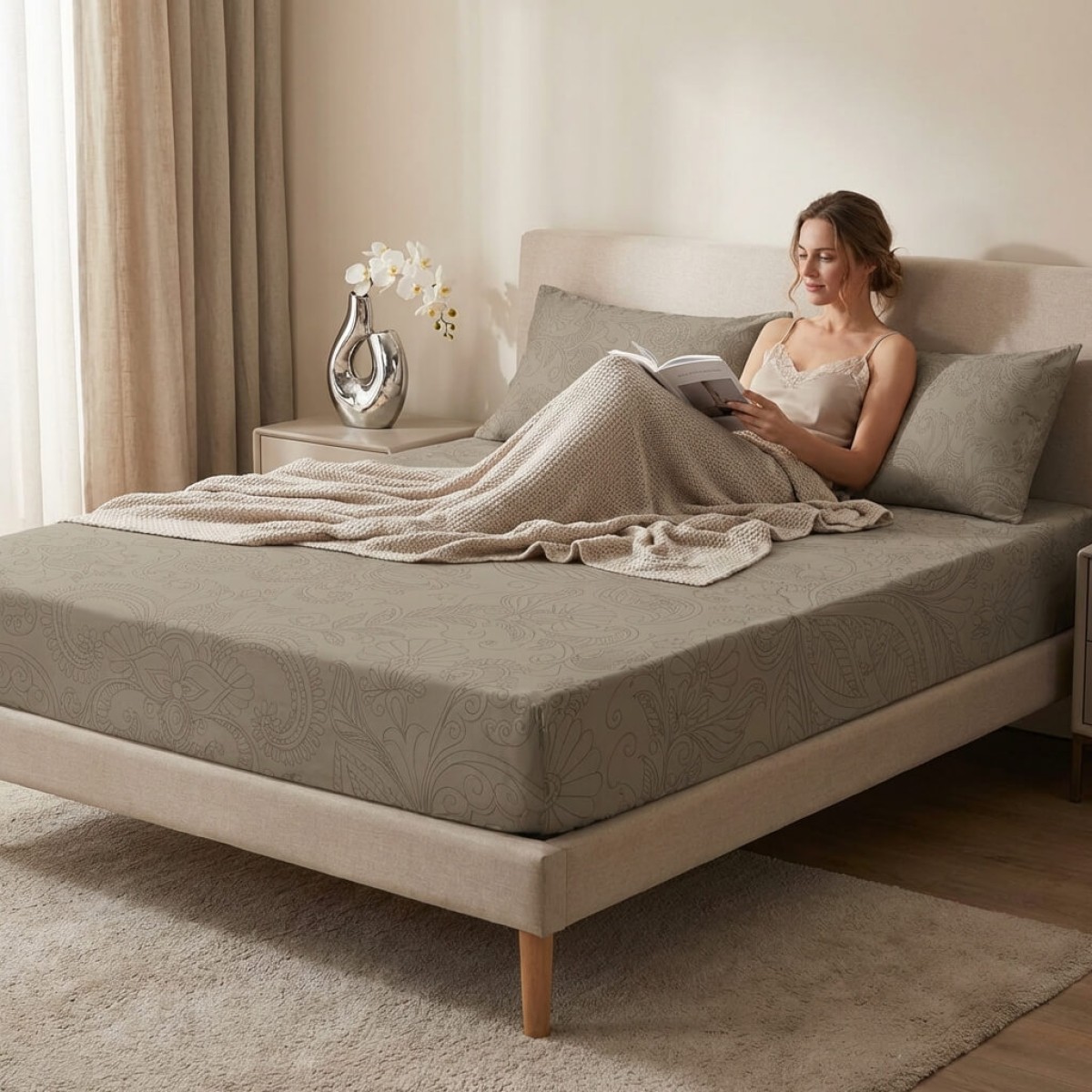 Създадена с внимание към детайла, тази материя предлага луксозно усещане и невероятна издръжливост. Тя осигурява мекота и комфорт при допир, като същевременно остава устойчива на интензивна употреба. Благодарение на модерните техники на изработка, чаршафите не губят форма, свежест и цвят дори след стотици пранета, а усещането върху кожата остава деликатно и приятно.