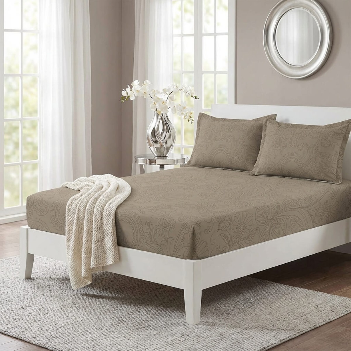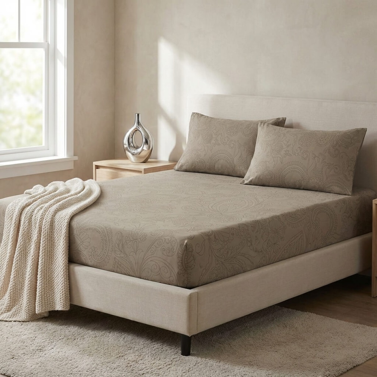 Спален комплект чаршафи с ластик от 3 части, Еви - Кафяв