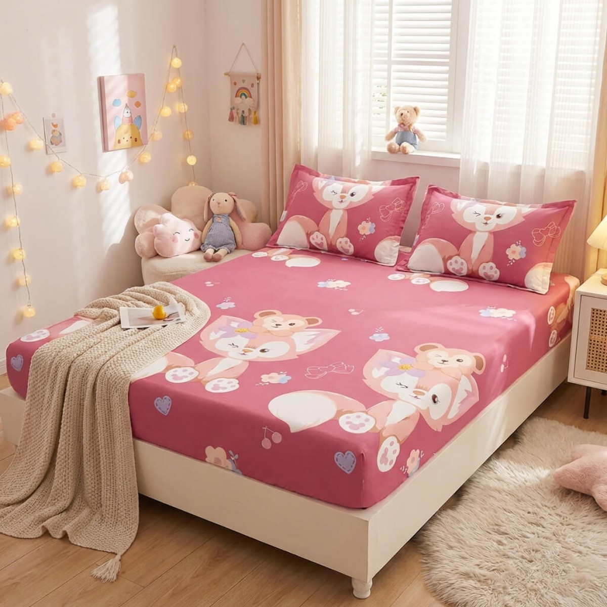 Спален комплект чаршафи с ластик от 3 части, Кюти