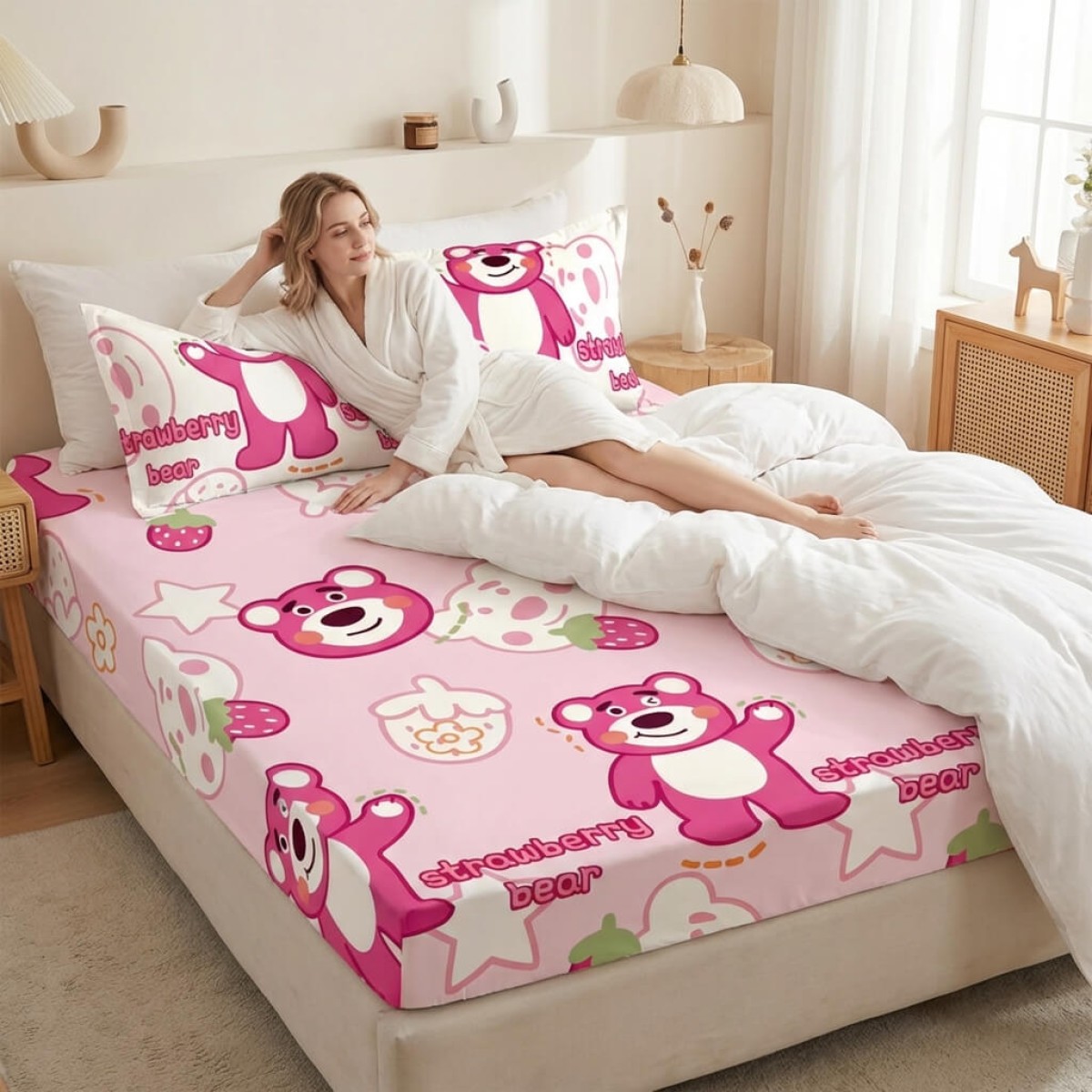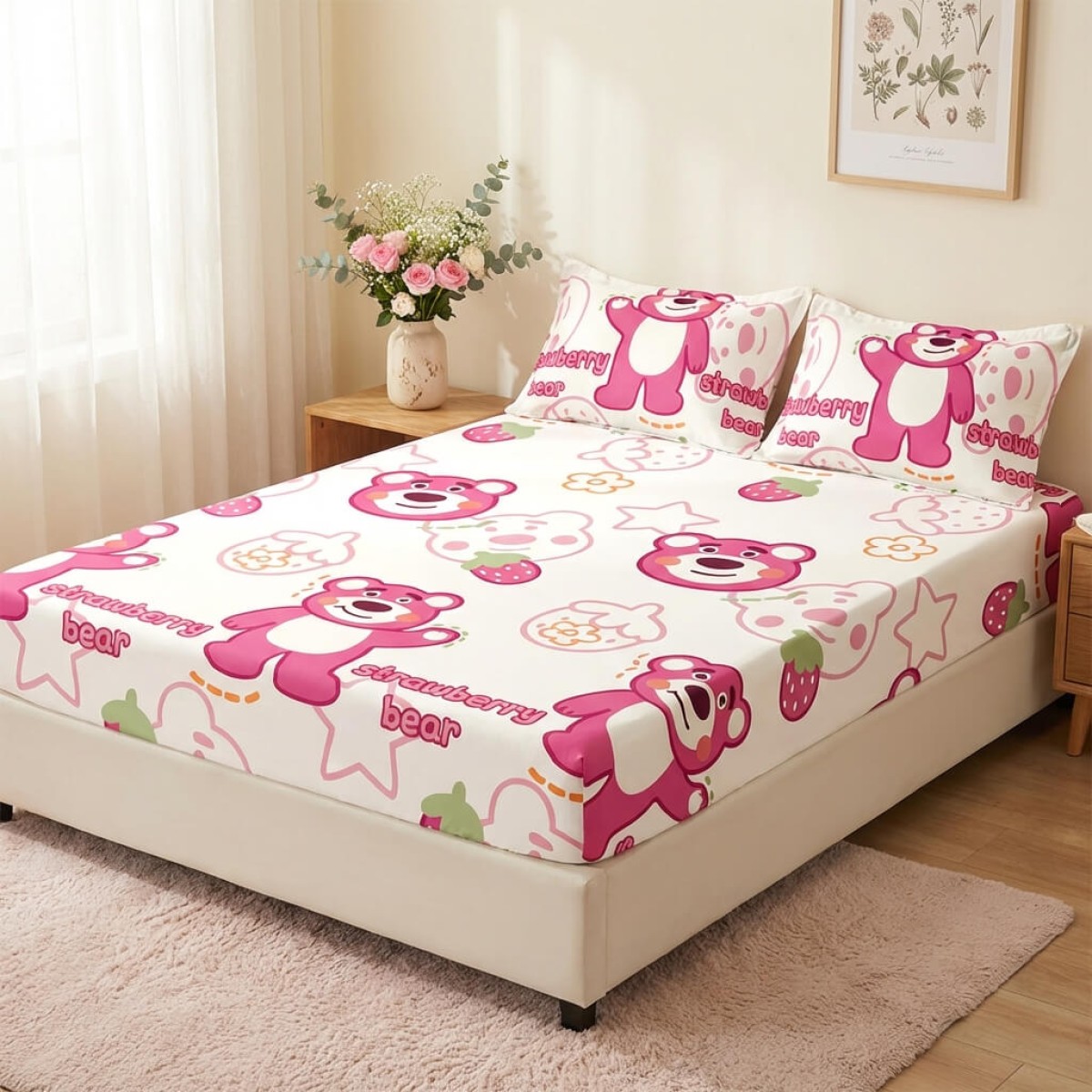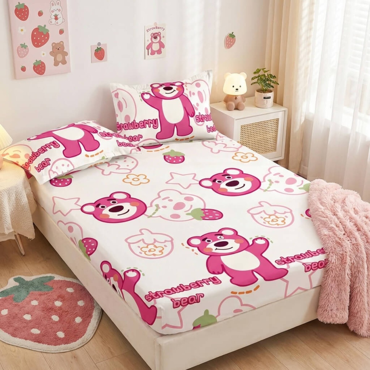 Спален комплект чаршафи с ластик от 3 части, Ягодовото мече