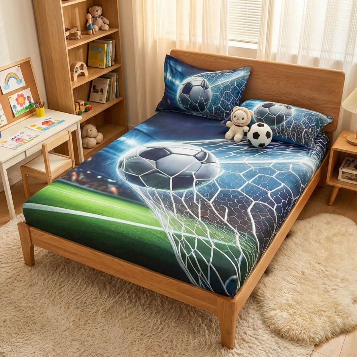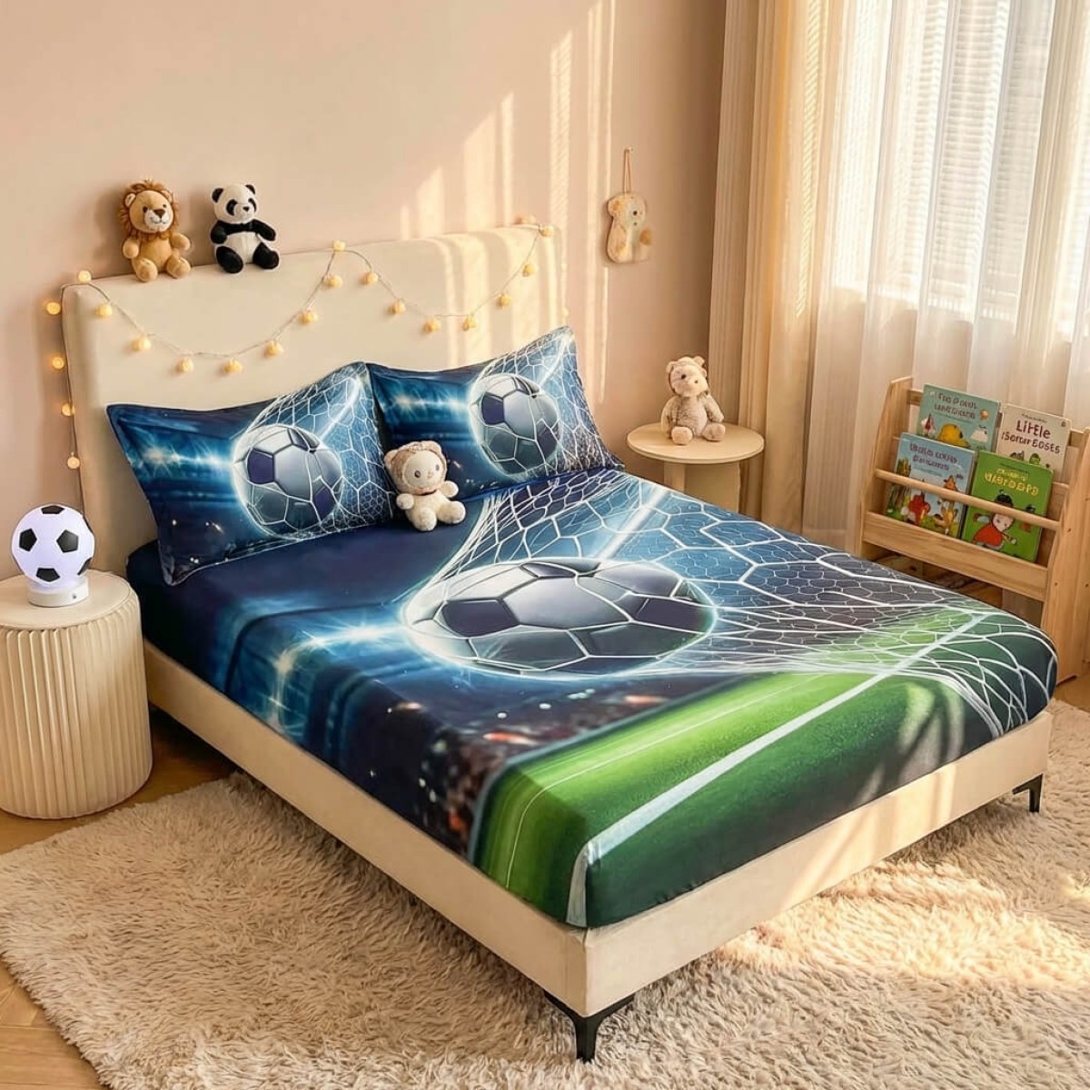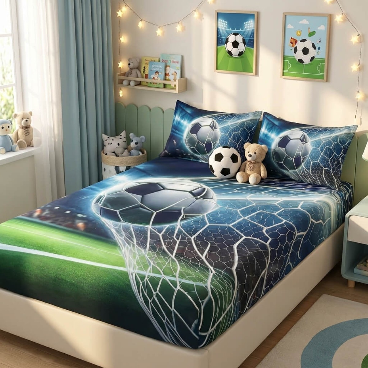 Спален комплект чаршафи с ластик от 3 части, Футбол
