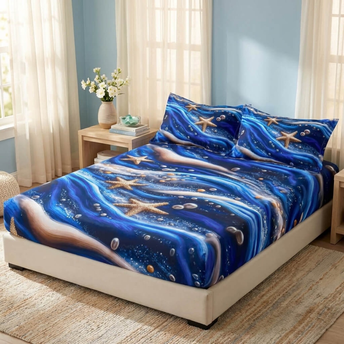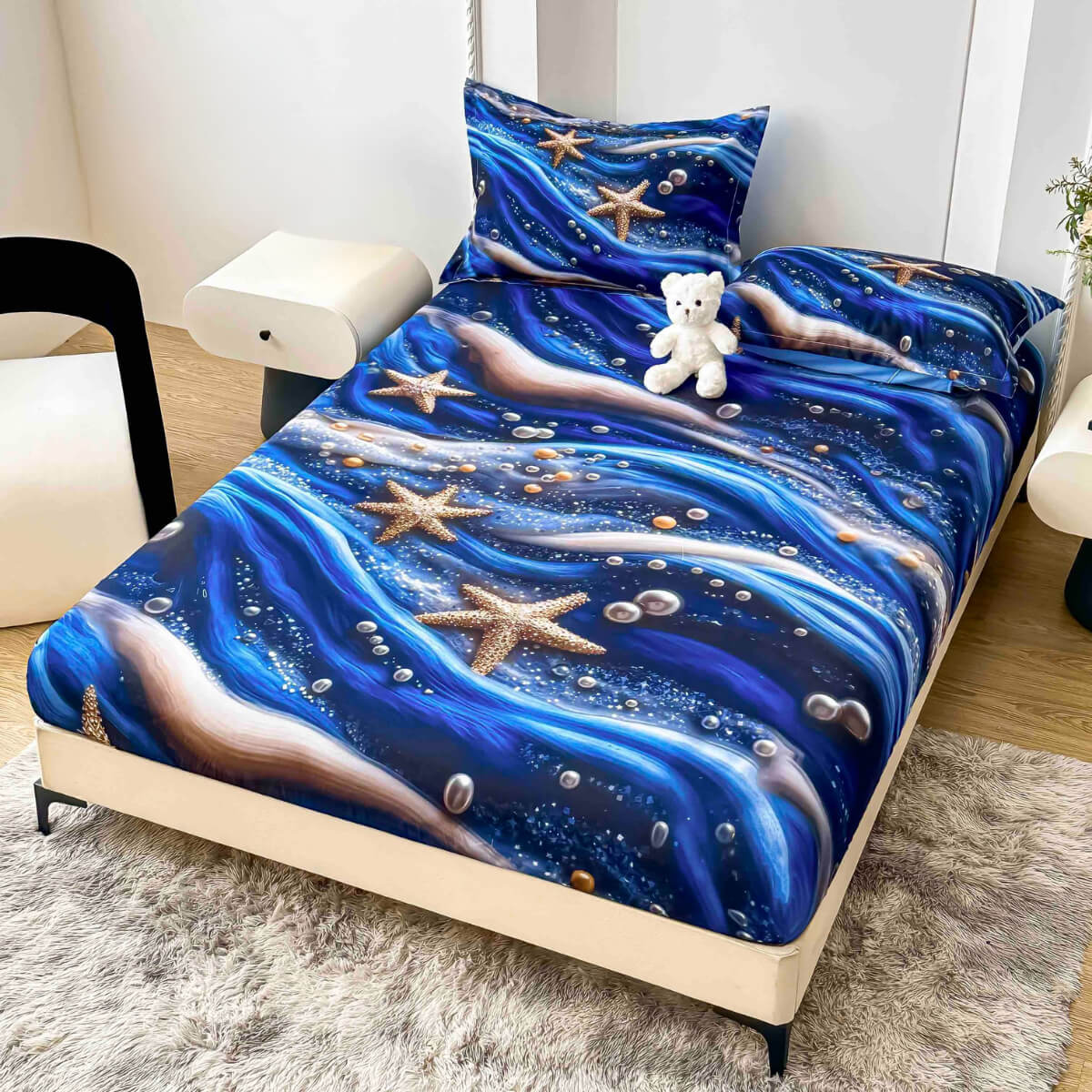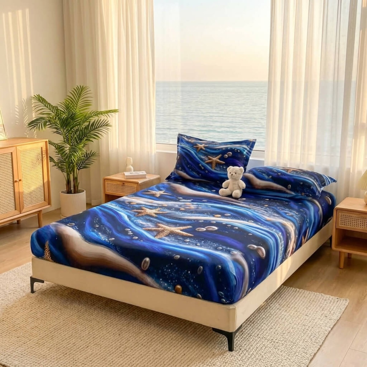 Спален комплект чаршафи с ластик от 3 части, Морско дъно