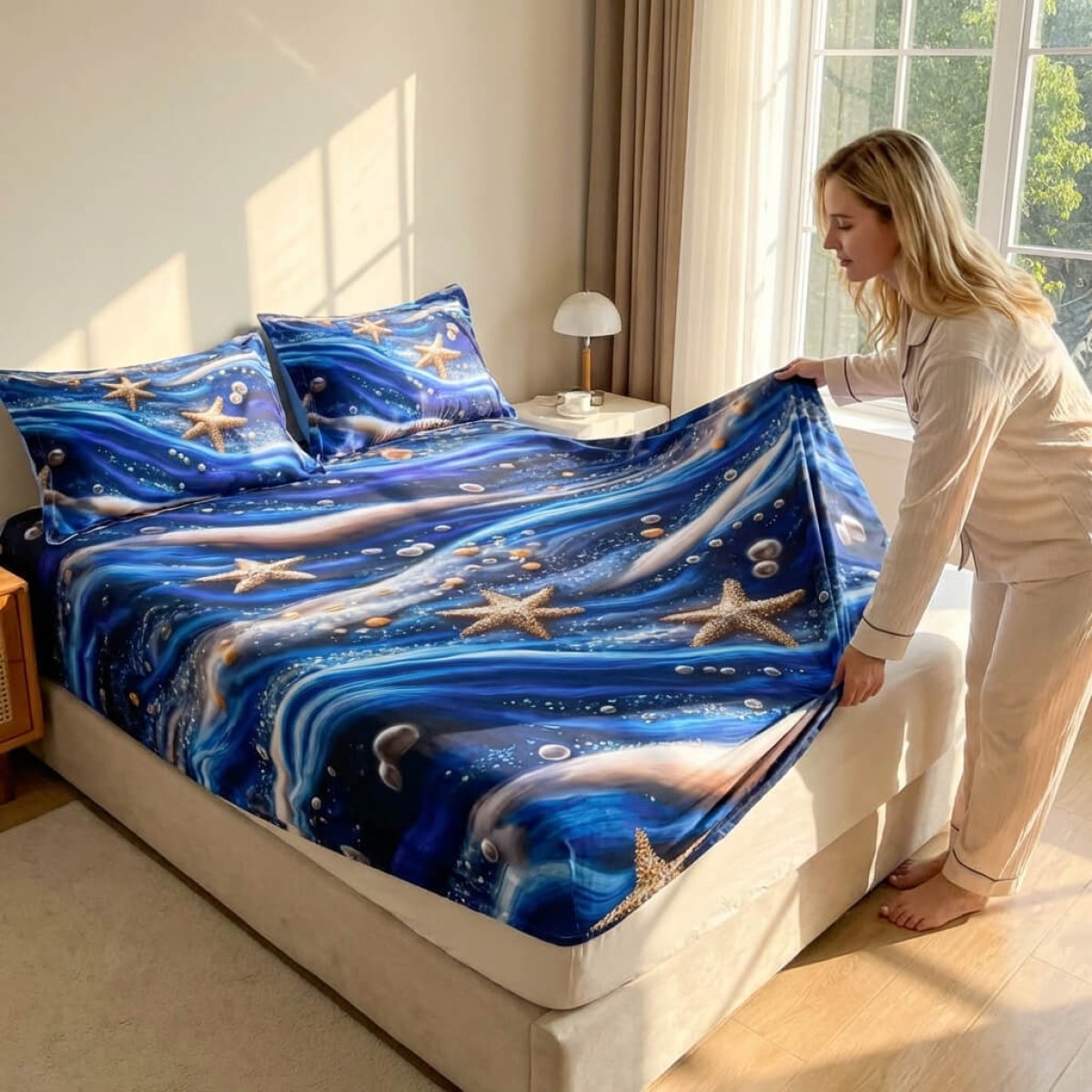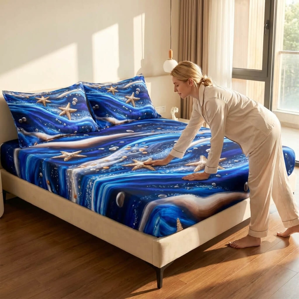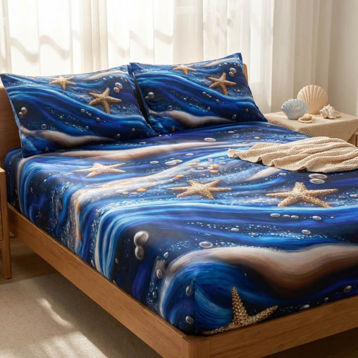 Спален комплект чаршафи с ластик от 3 части, Морско дъно