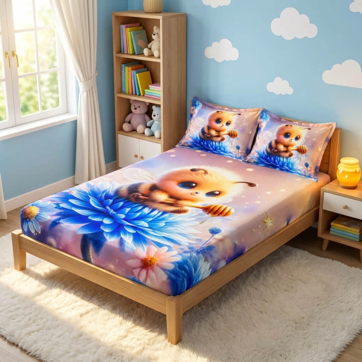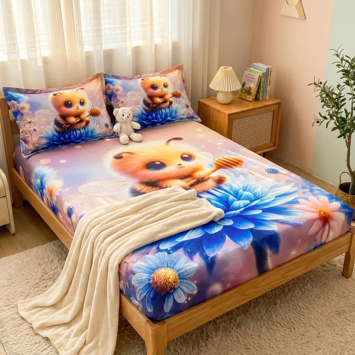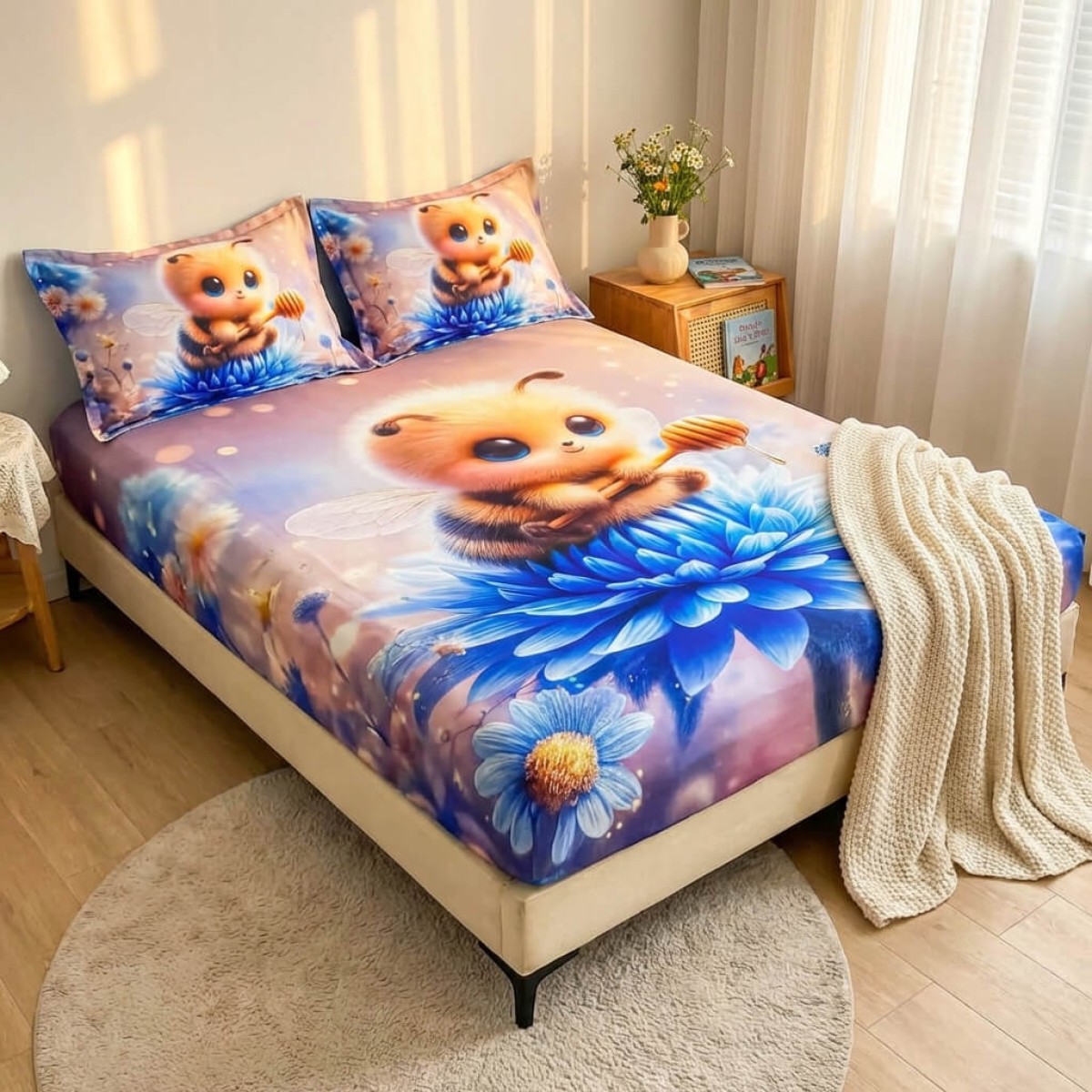 Спален комплект чаршафи с ластик от 3 части, Пчеличка