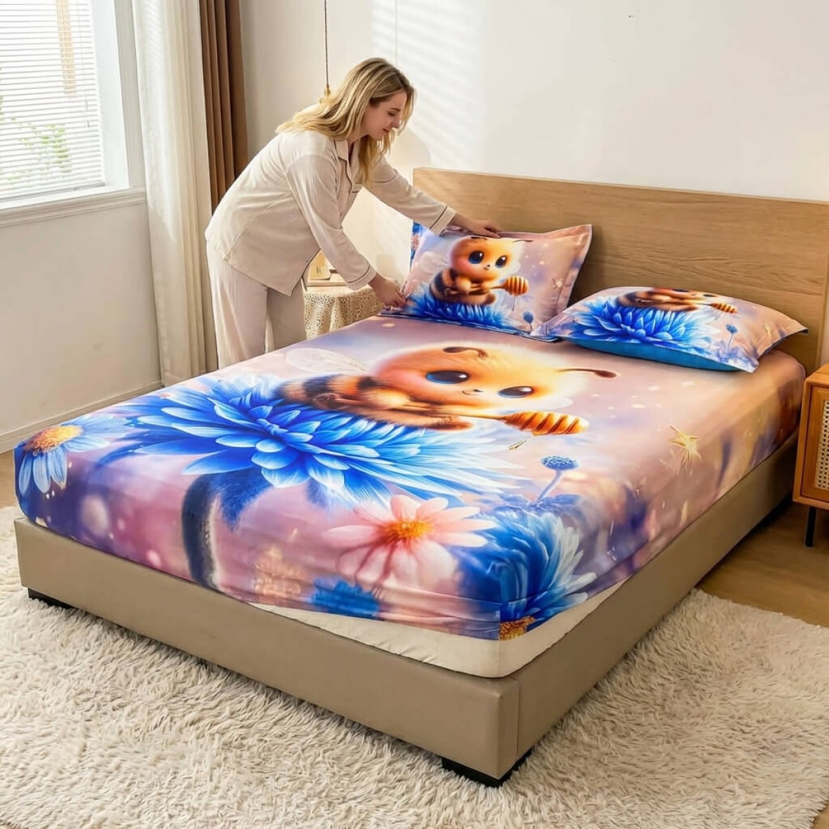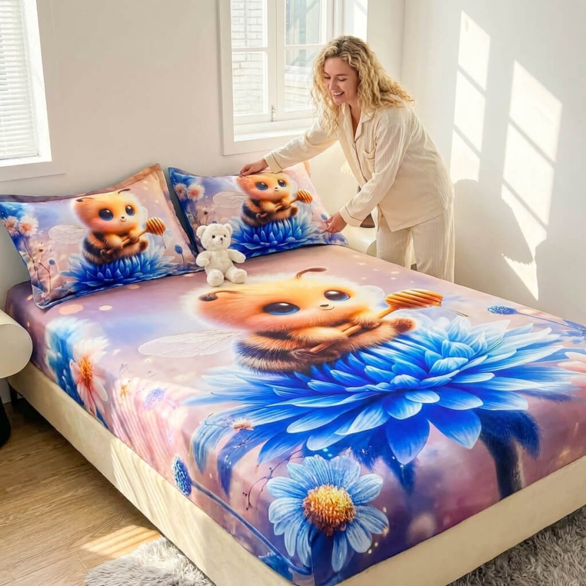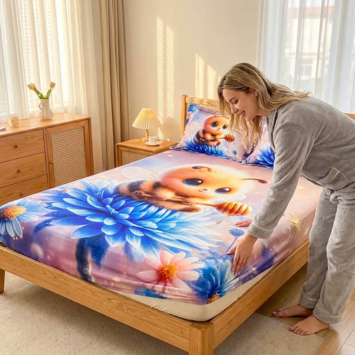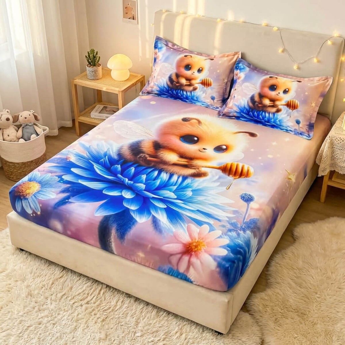 Спален комплект чаршафи с ластик от 3 части, Пчеличка