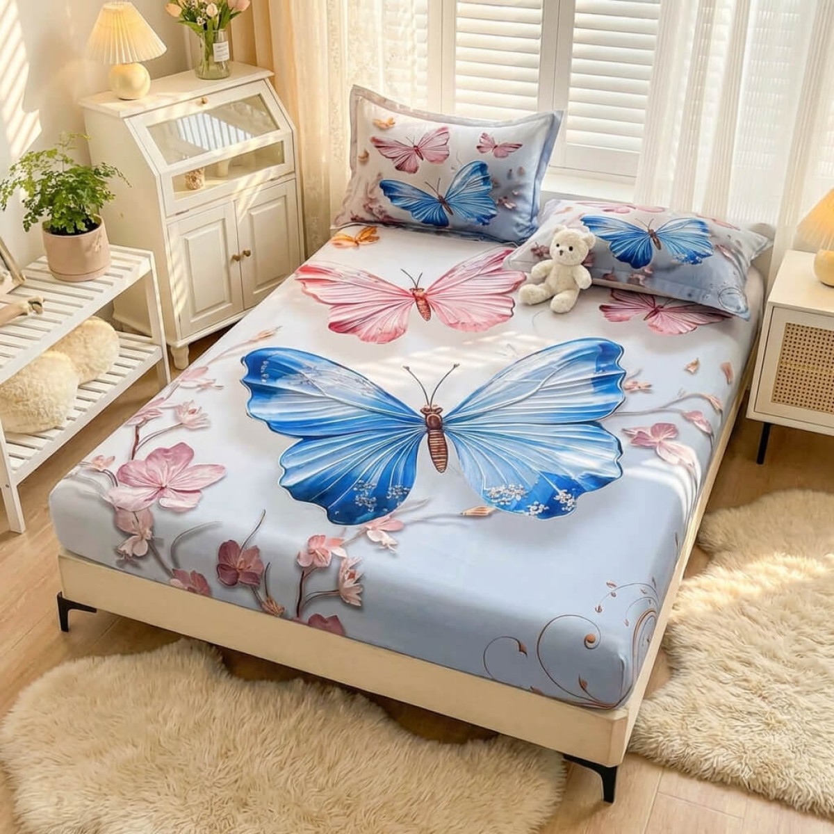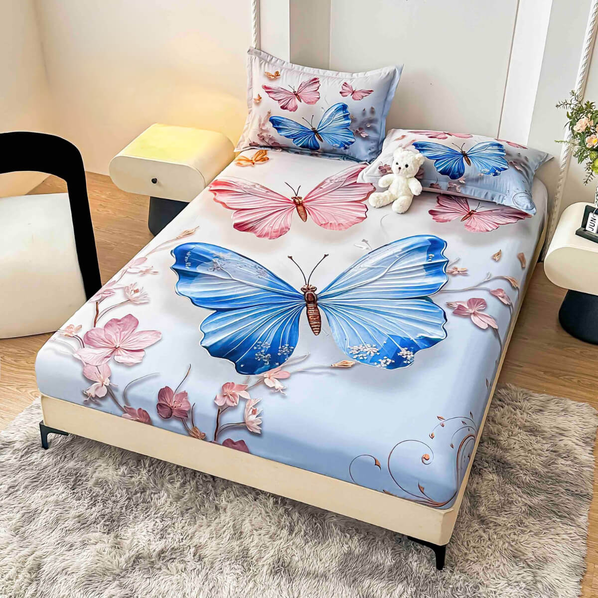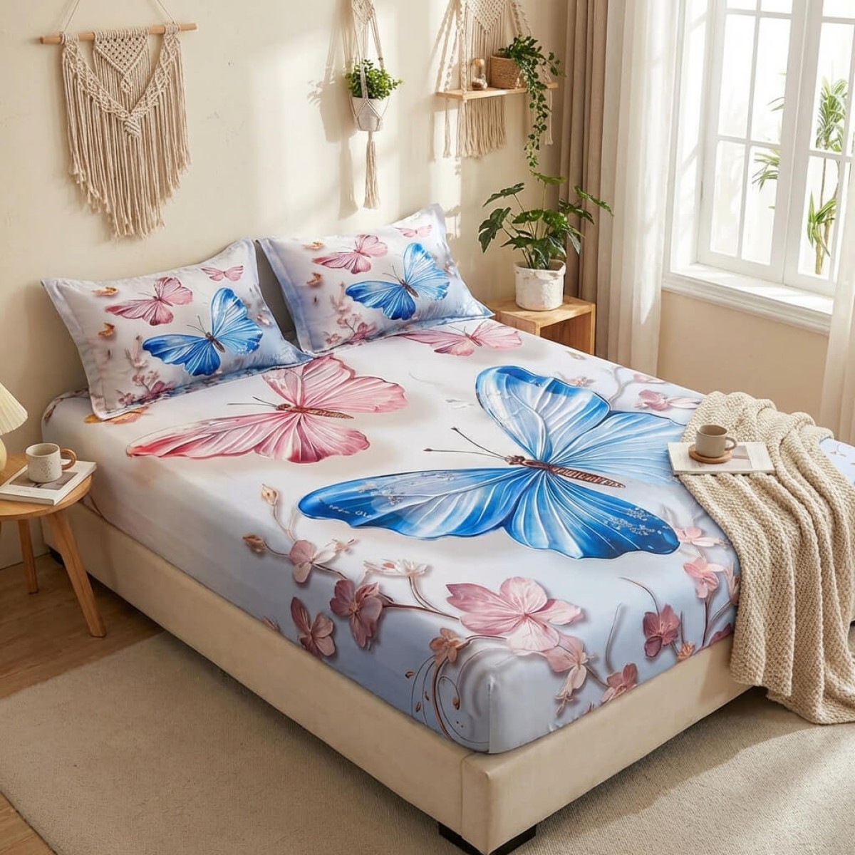 Спален комплект чаршафи с ластик от 3 части, Пеперуда