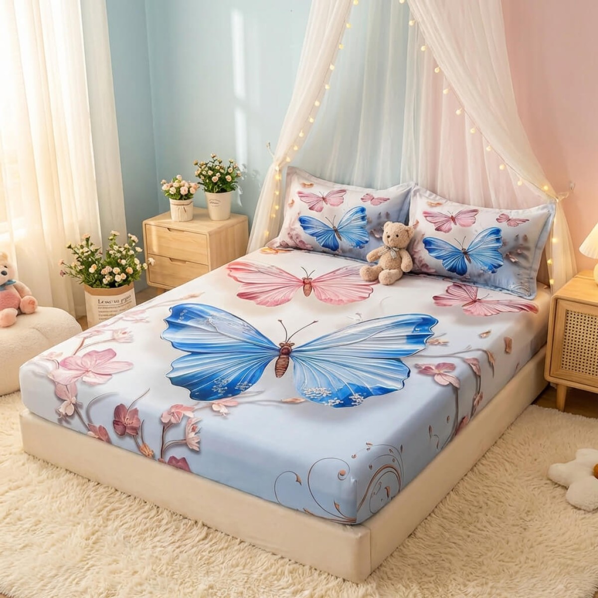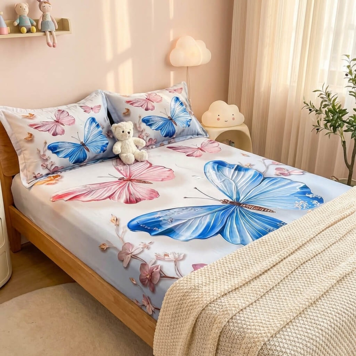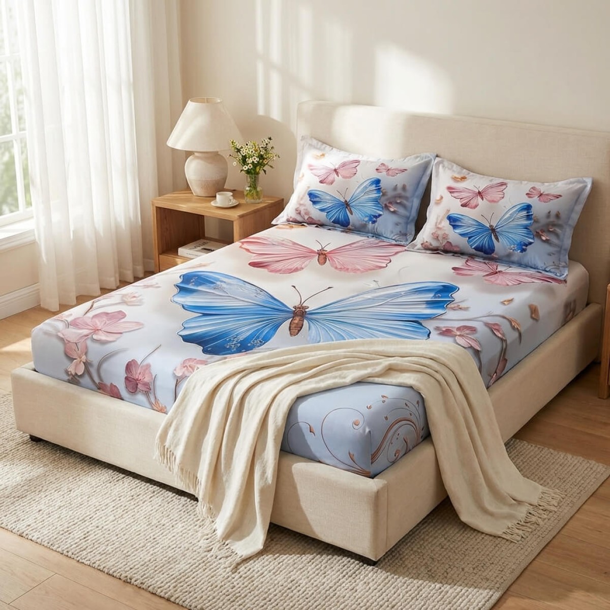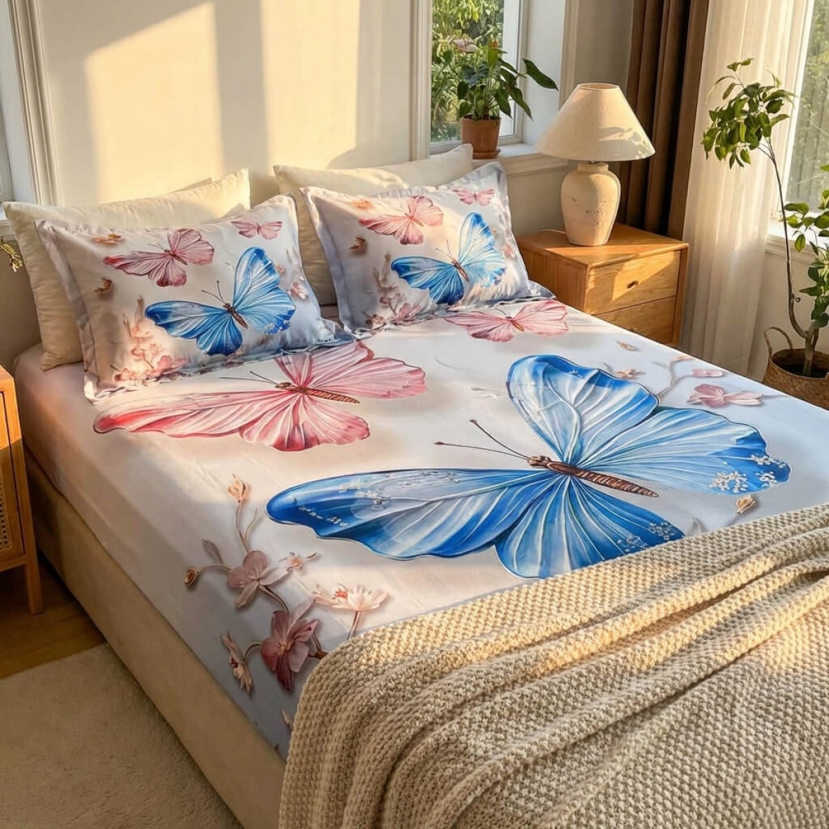 Спален комплект чаршафи с ластик от 3 части, Пеперуда