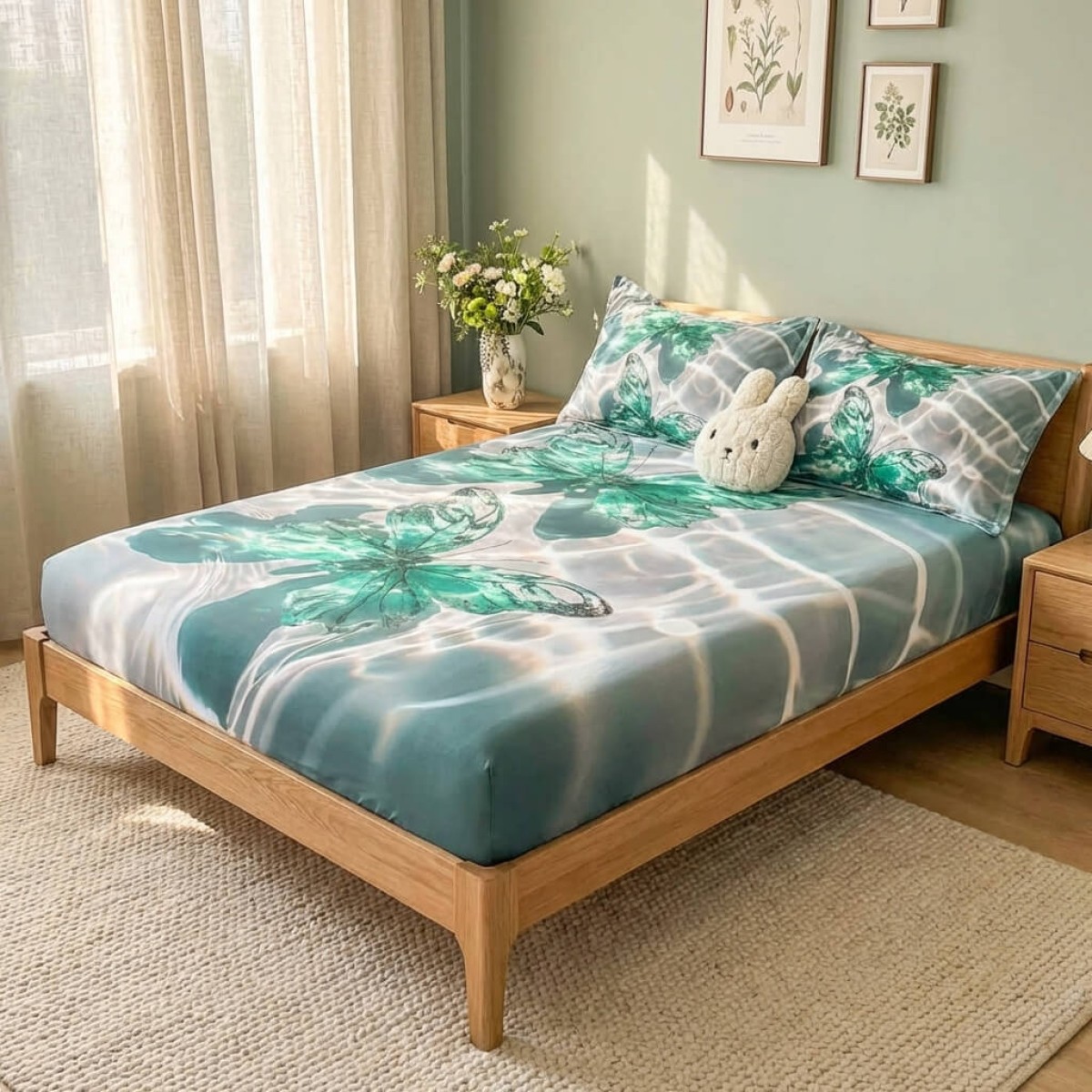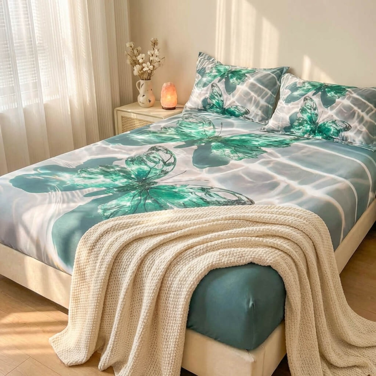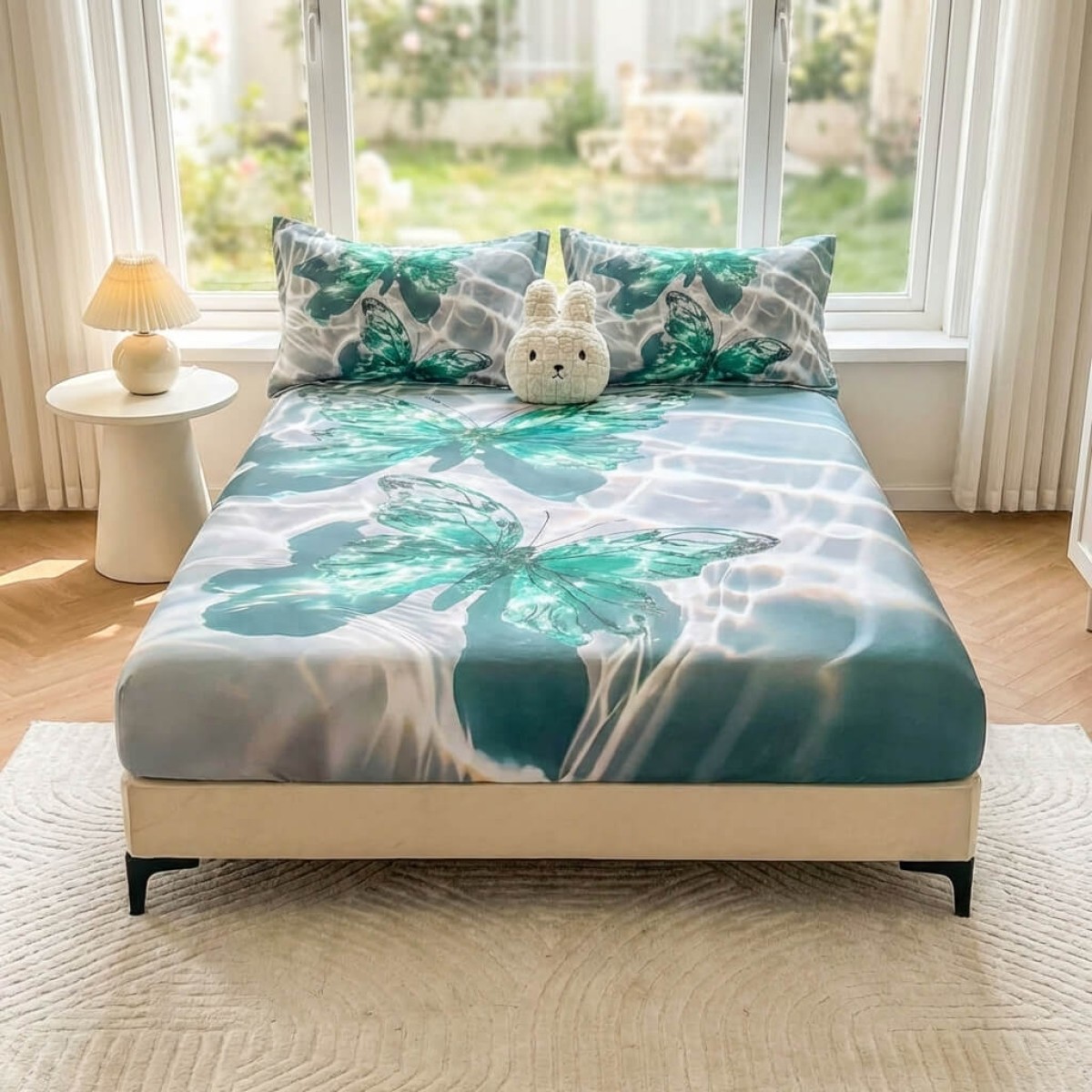 Спален комплект чаршафи с ластик от 3 части, Пеперуди