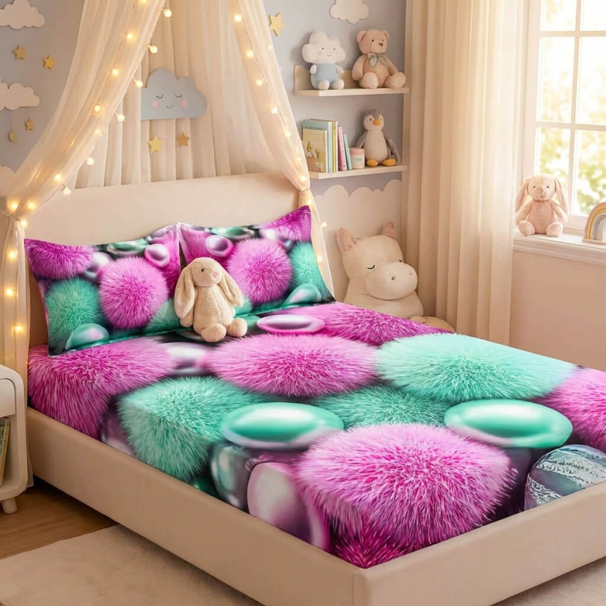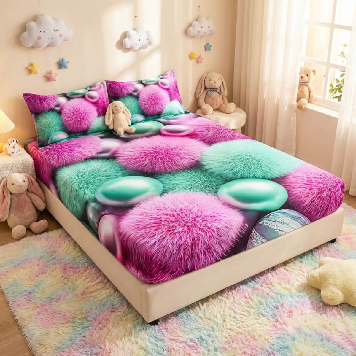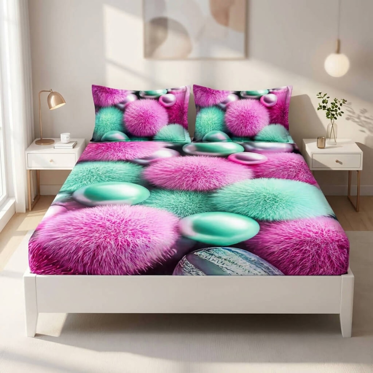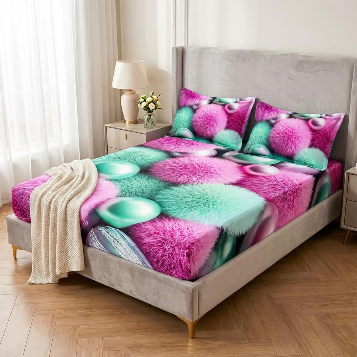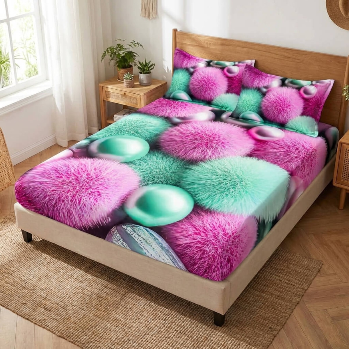 Спален комплект чаршафи с ластик от 3 части, Пухи