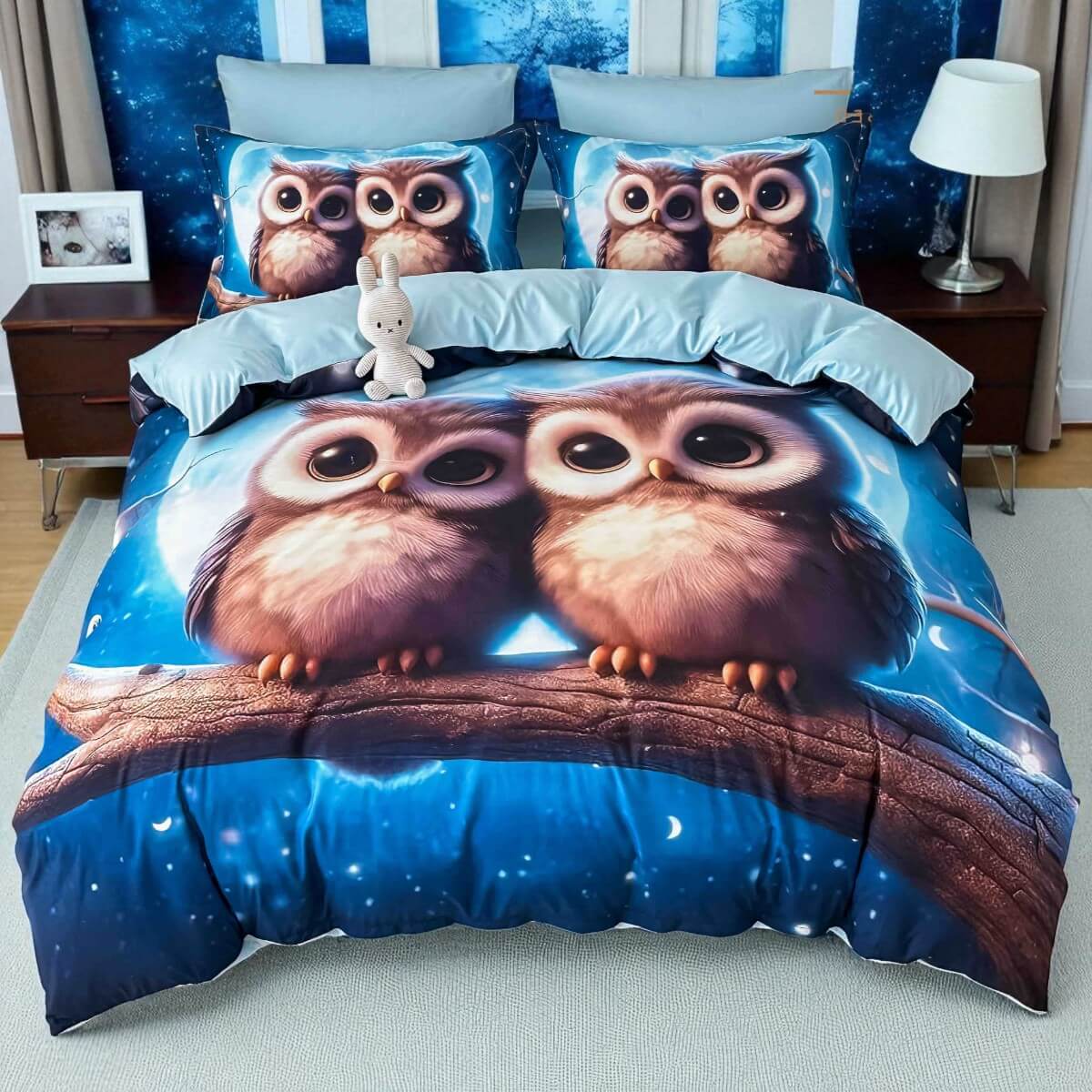 5D спален комплект чаршафи - Бухалчета, с ластик