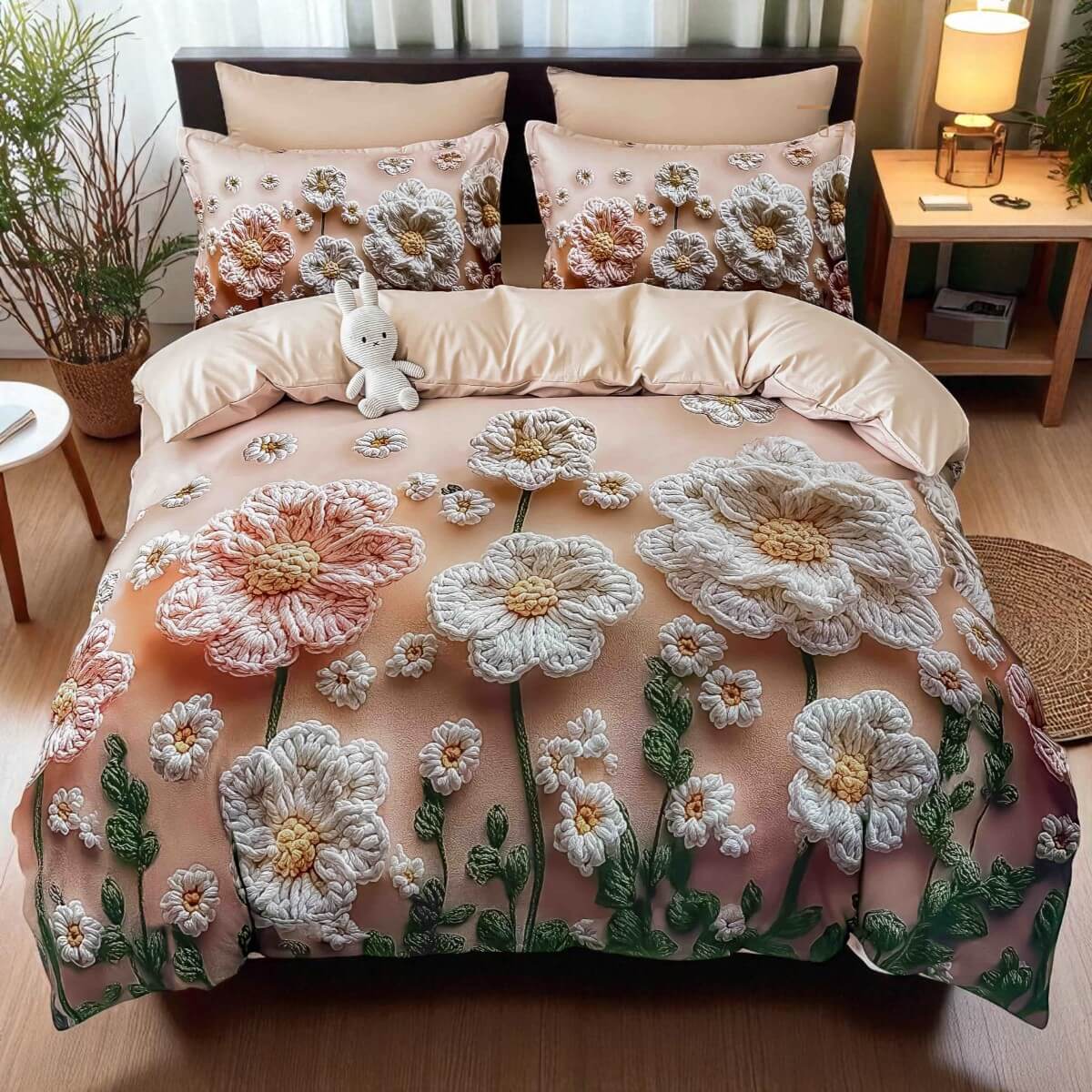 5D спален комплект чаршафи - Цвети, от 6 части с ластик