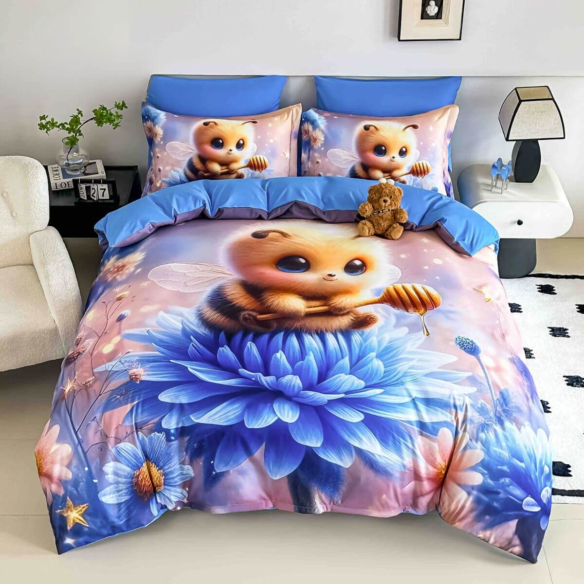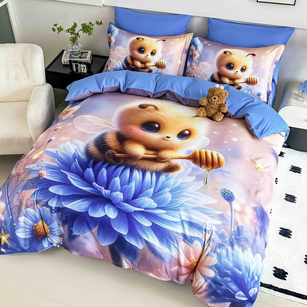 5D спален комплект чаршафи- Мед, от 6 части с ластик