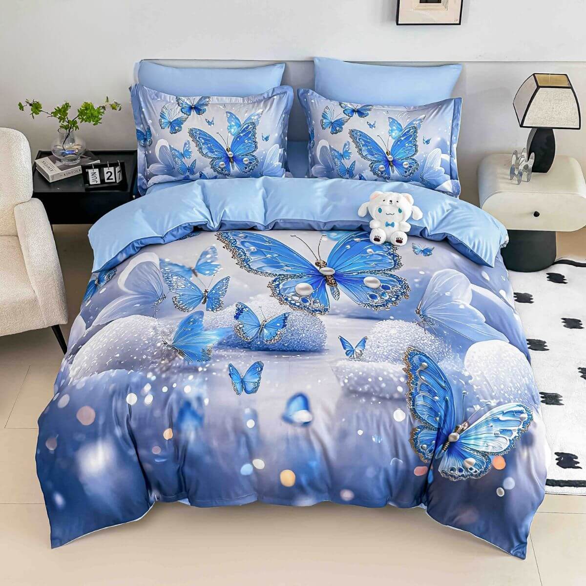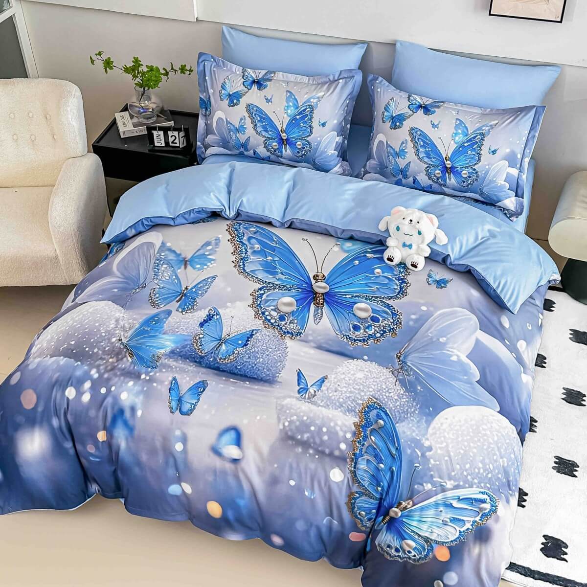 5D спален комплект чаршафи- Пеперуди, от 6 части с ластик