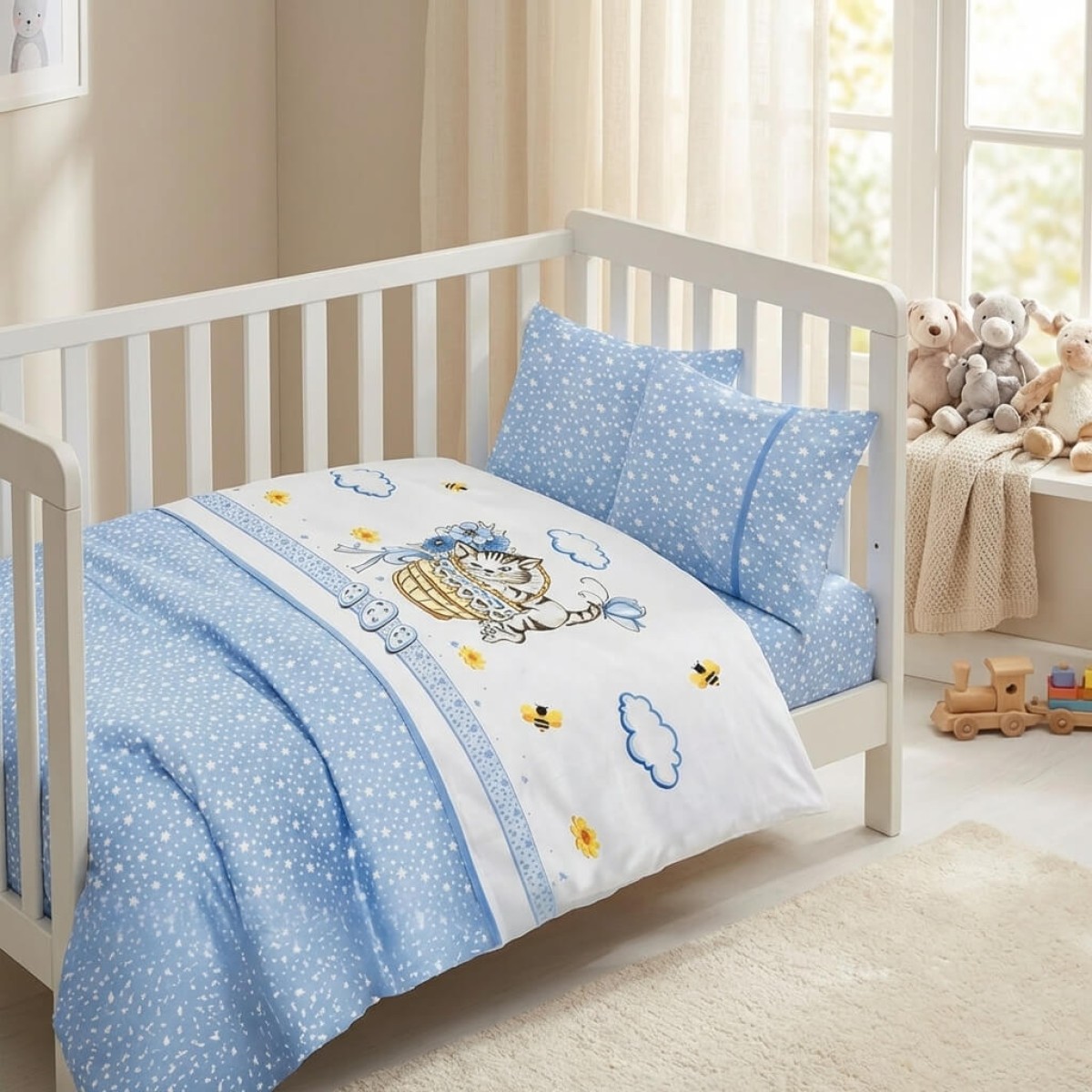Бебешки спален комплект от 100% бамбук - Мави - Кити