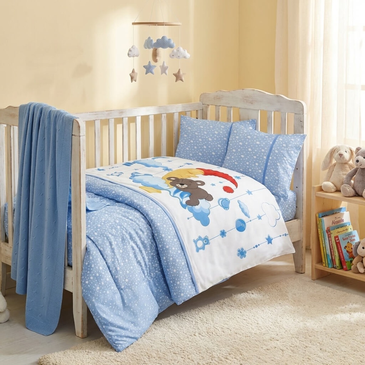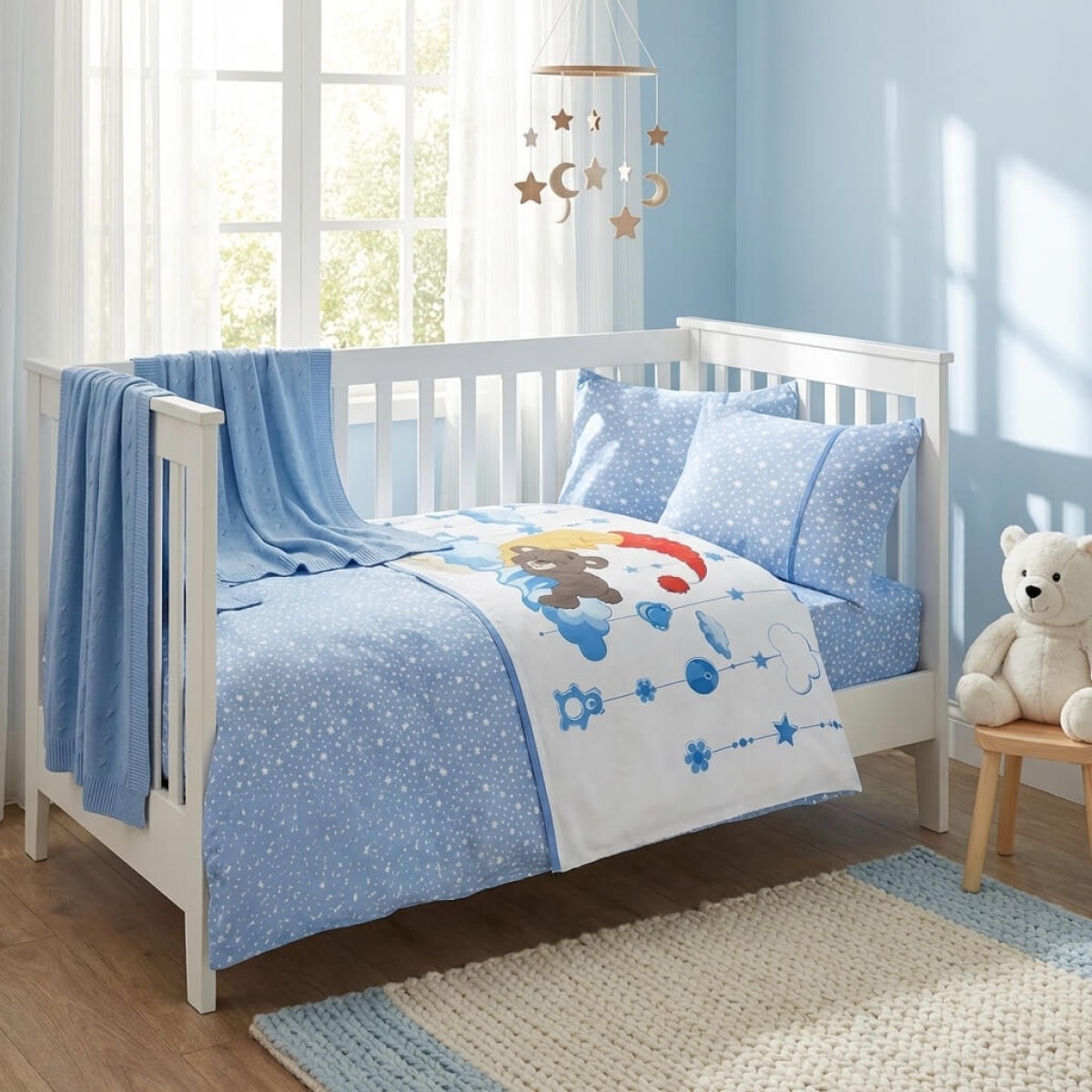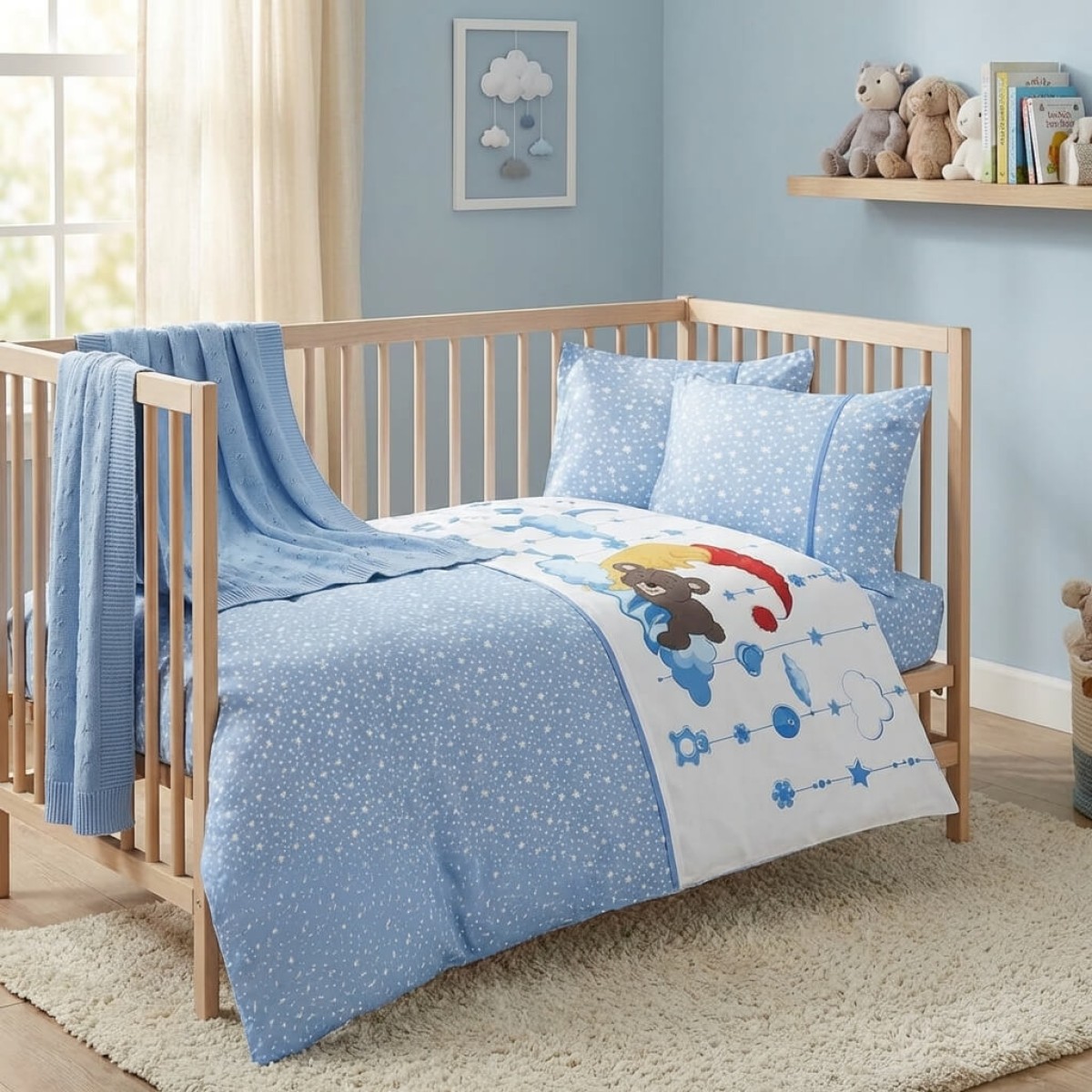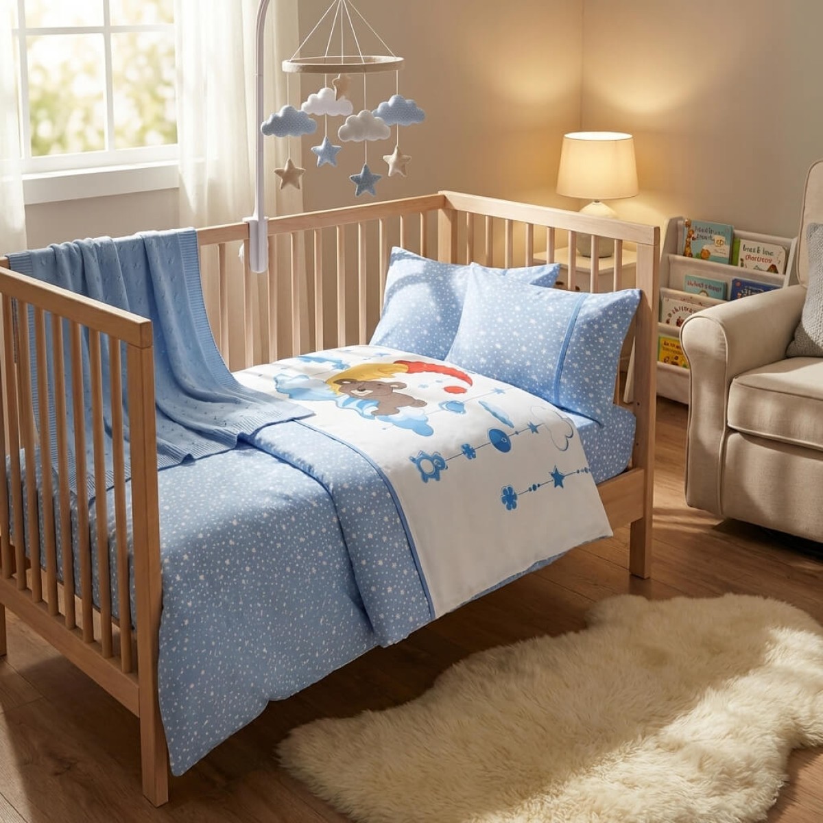 Бебешки спален комплект с одеяло от 100% бамбук, Мави - Сладки сънища