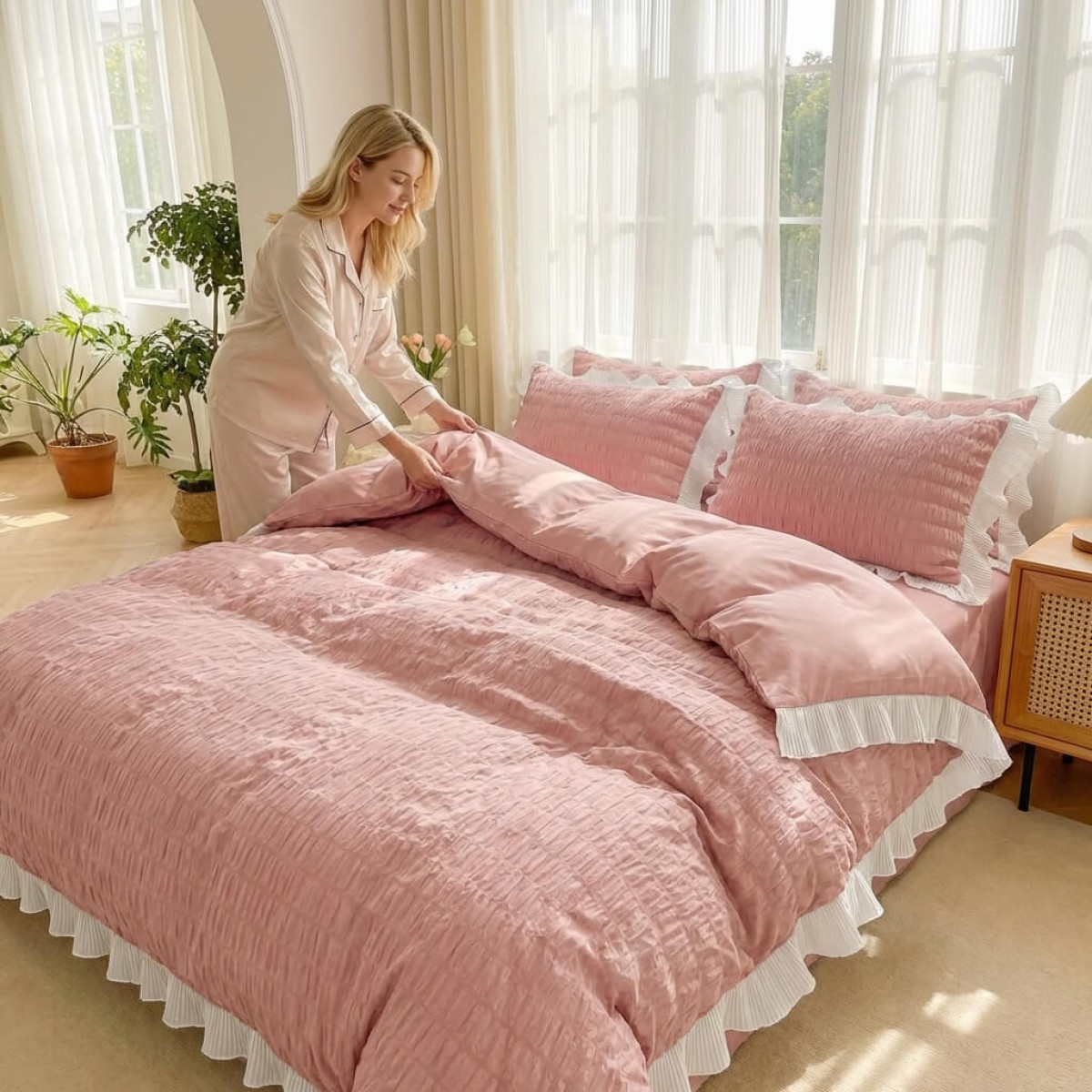 Създадена с внимание към детайла, тази материя предлага луксозно усещане и невероятна издръжливост. Тя осигурява мекота и комфорт при допир, като същевременно остава устойчива на интензивна употреба. Благодарение на модерните техники на изработка, чаршафите не губят форма, свежест и цвят дори след стотици пранета, а усещането върху кожата остава деликатно и приятно.