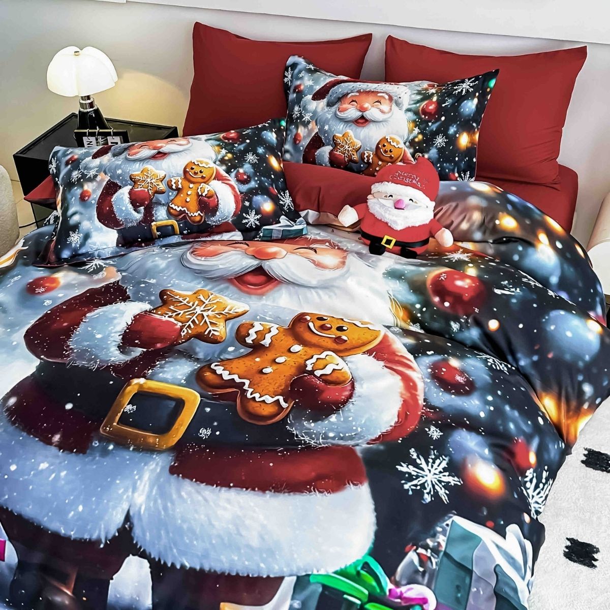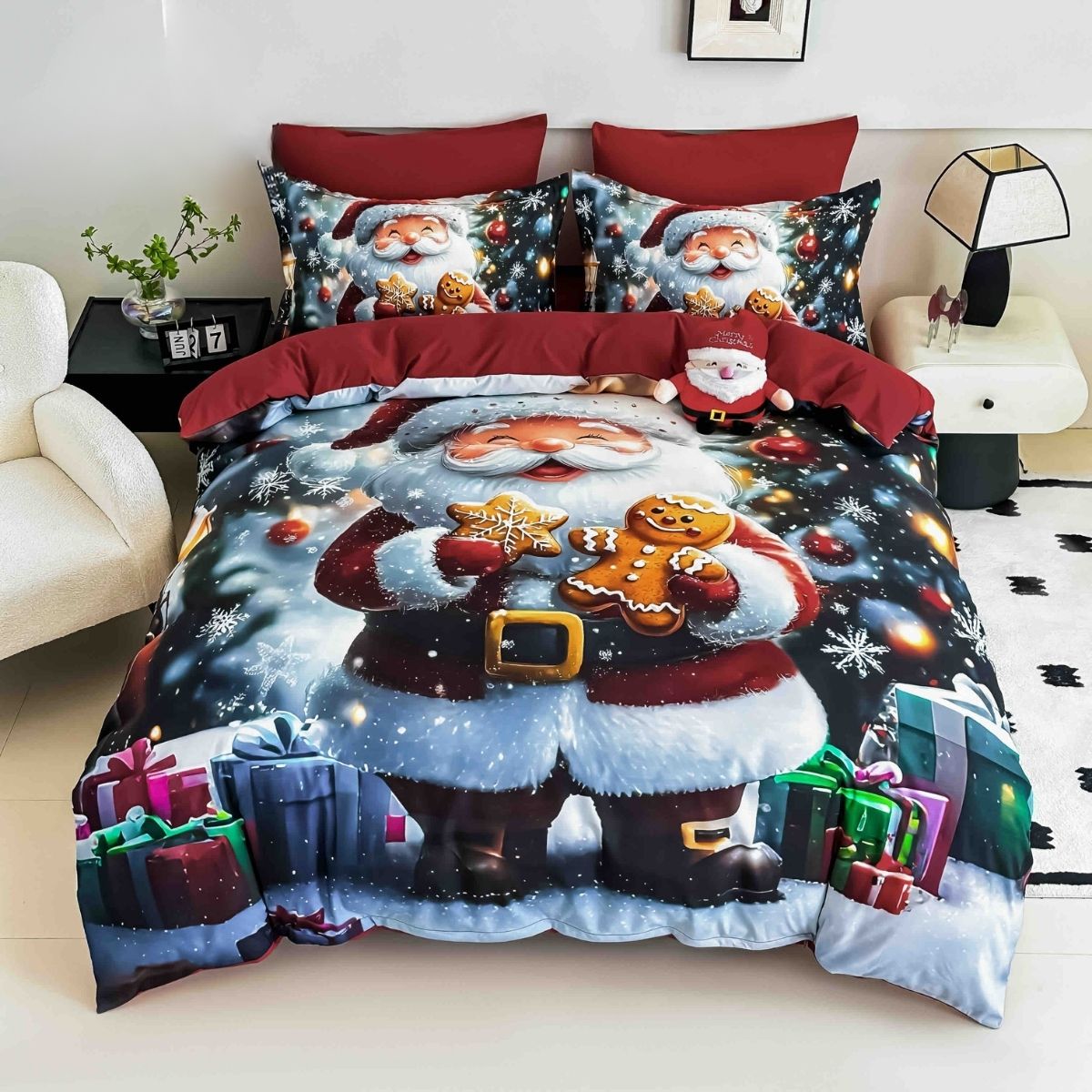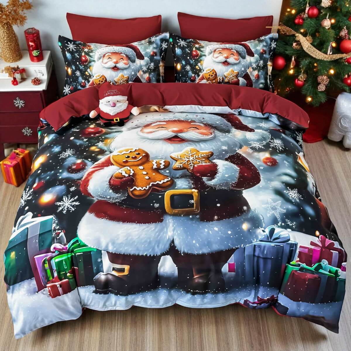 Коледен спален комплект чаршафи - Дядо Коледа, от 6 части с ластик