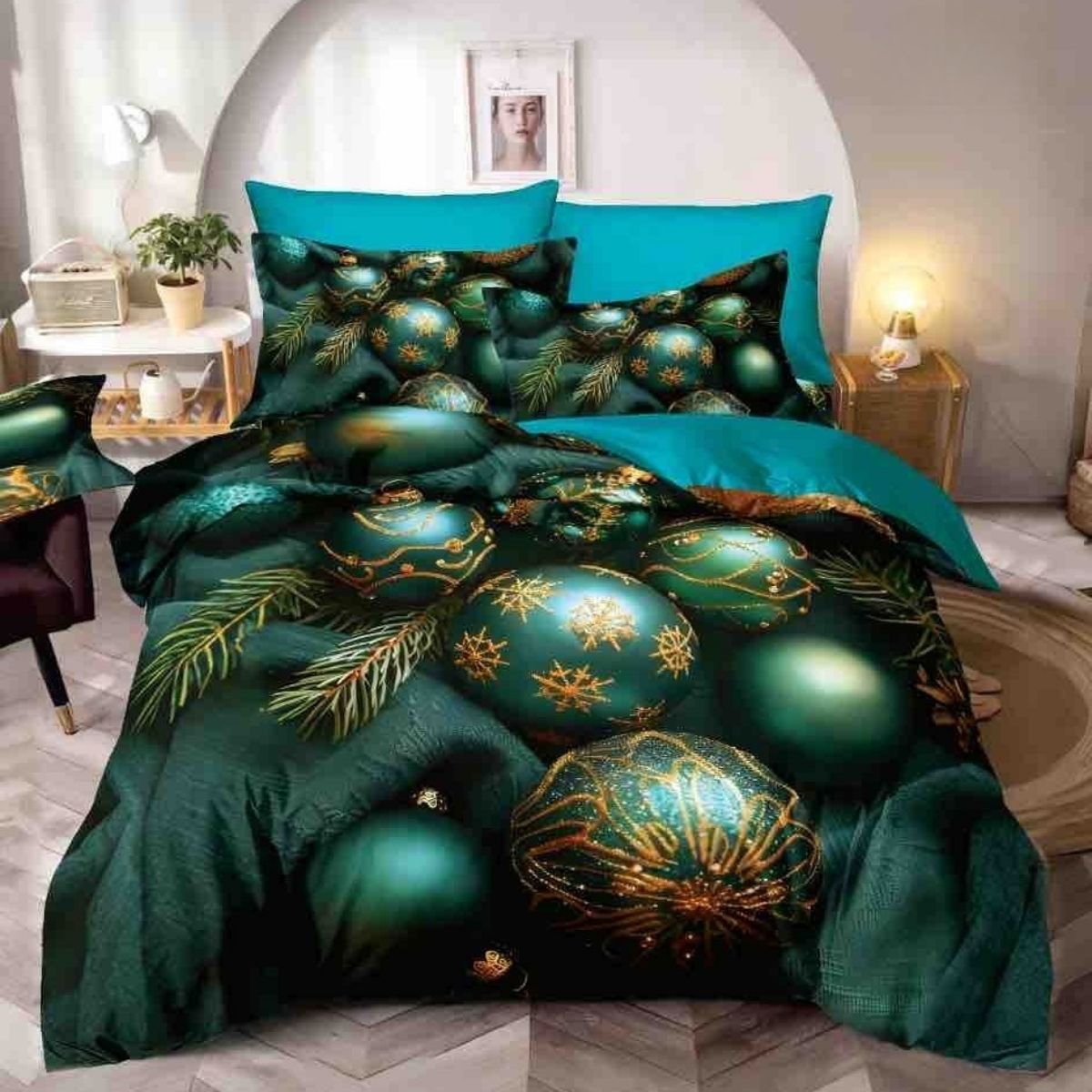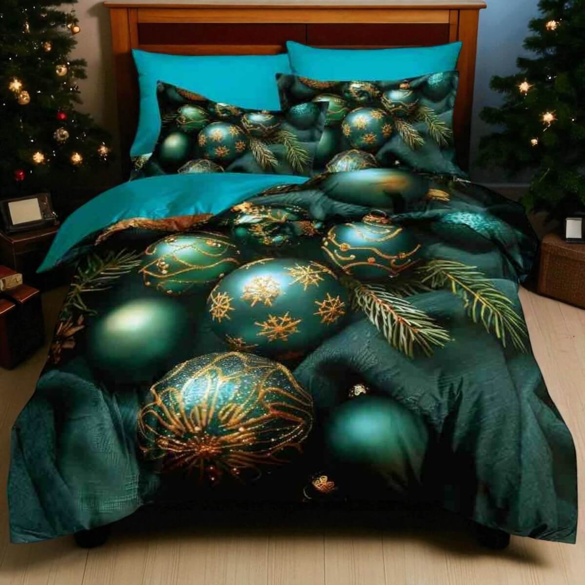 Коледен спален комплект чаршафи - Коледна Магия, от 6 части с ластик