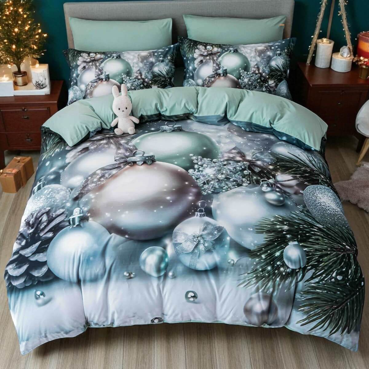 Коледен спален комплект чаршафи - Коледна Приказка, от 6 части с ластик
