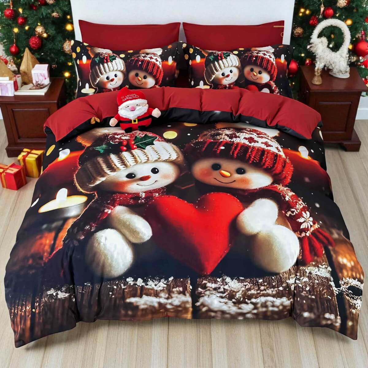 Коледен спален комплект чаршафи - Приятели, от 6 части с ластик