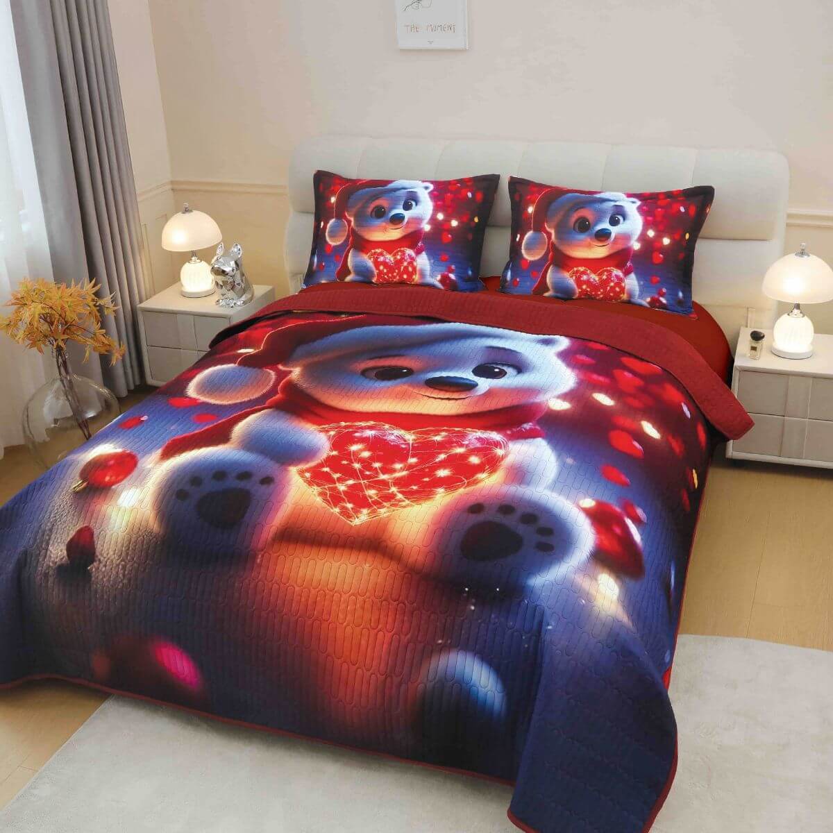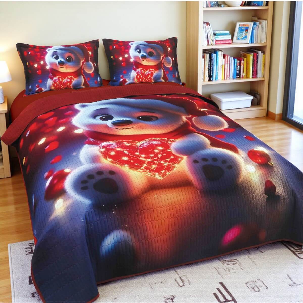 Създайте топла и вълшебна атмосфера с тази стилна коледна кувертюра, която съчетава комфорт, качество и празничен чар. С класически коледен десен в нежни нюанси на червено, зелено и бяло, тя ще придаде завършен вид на всяка зимна декорация.