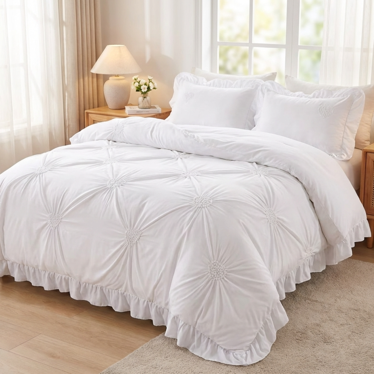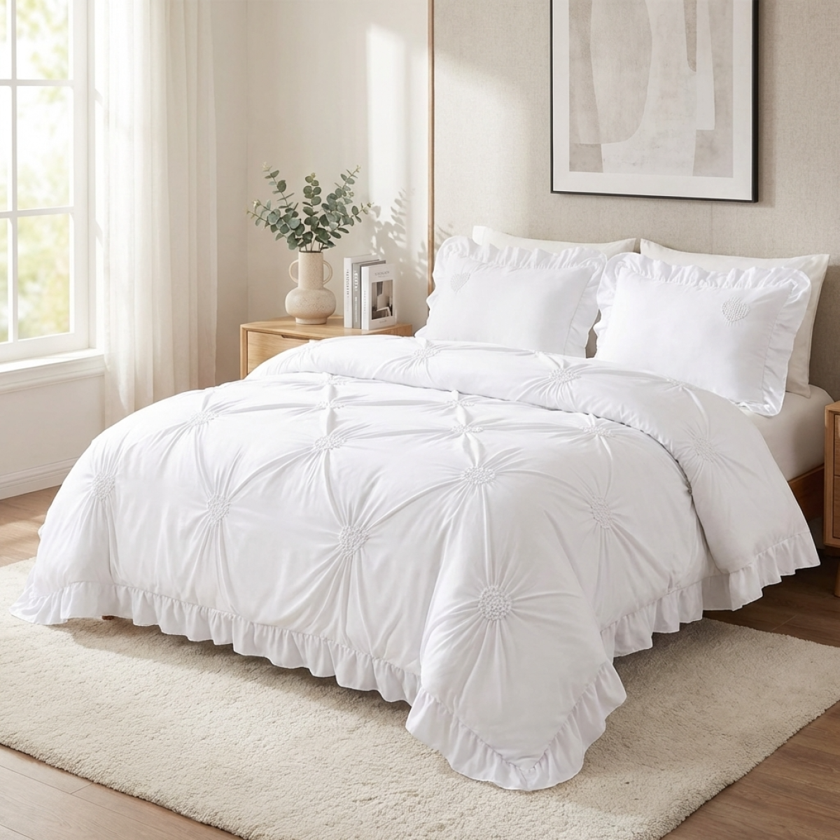 Луксозен спален комплект чаршафи от 4 части, Хармония - Бял