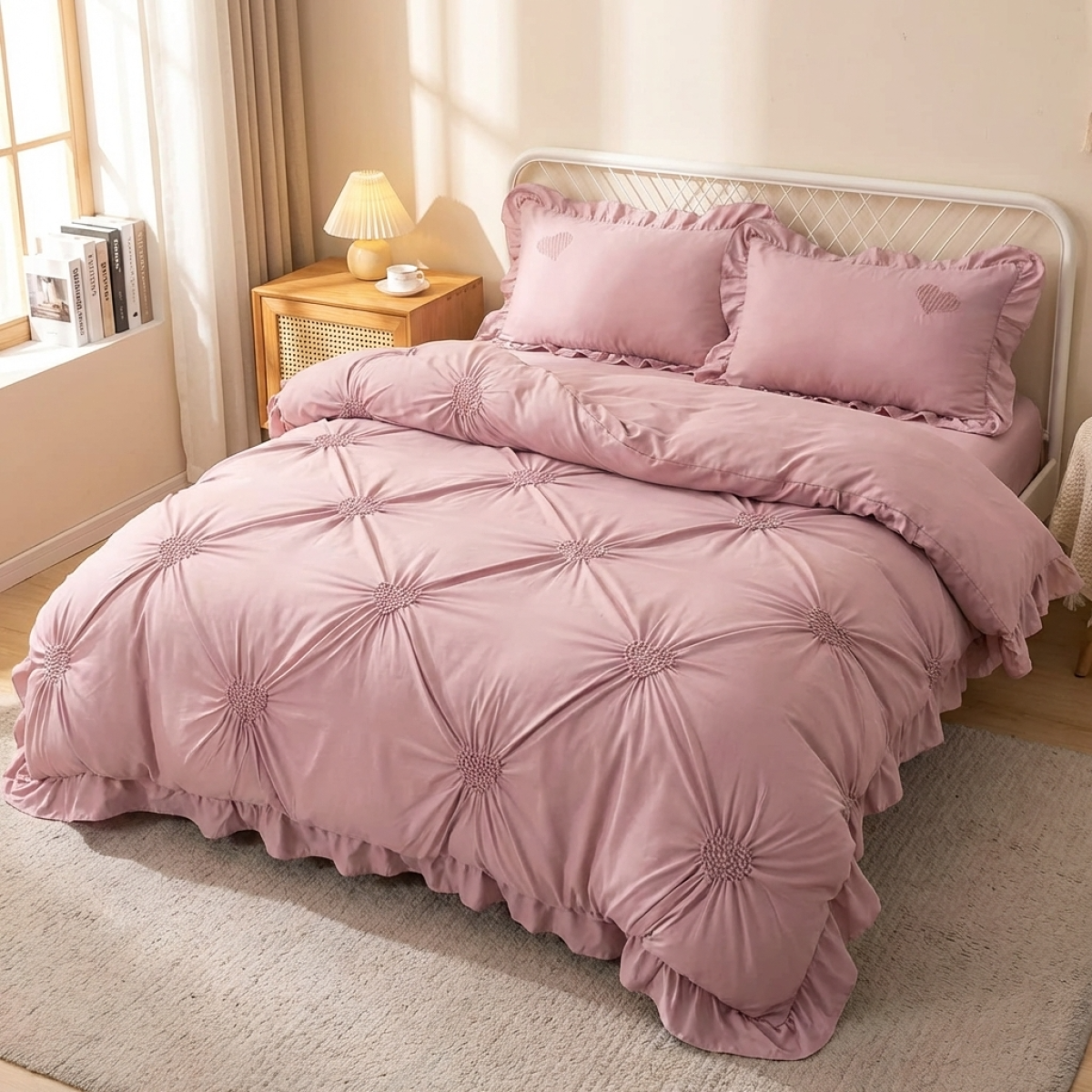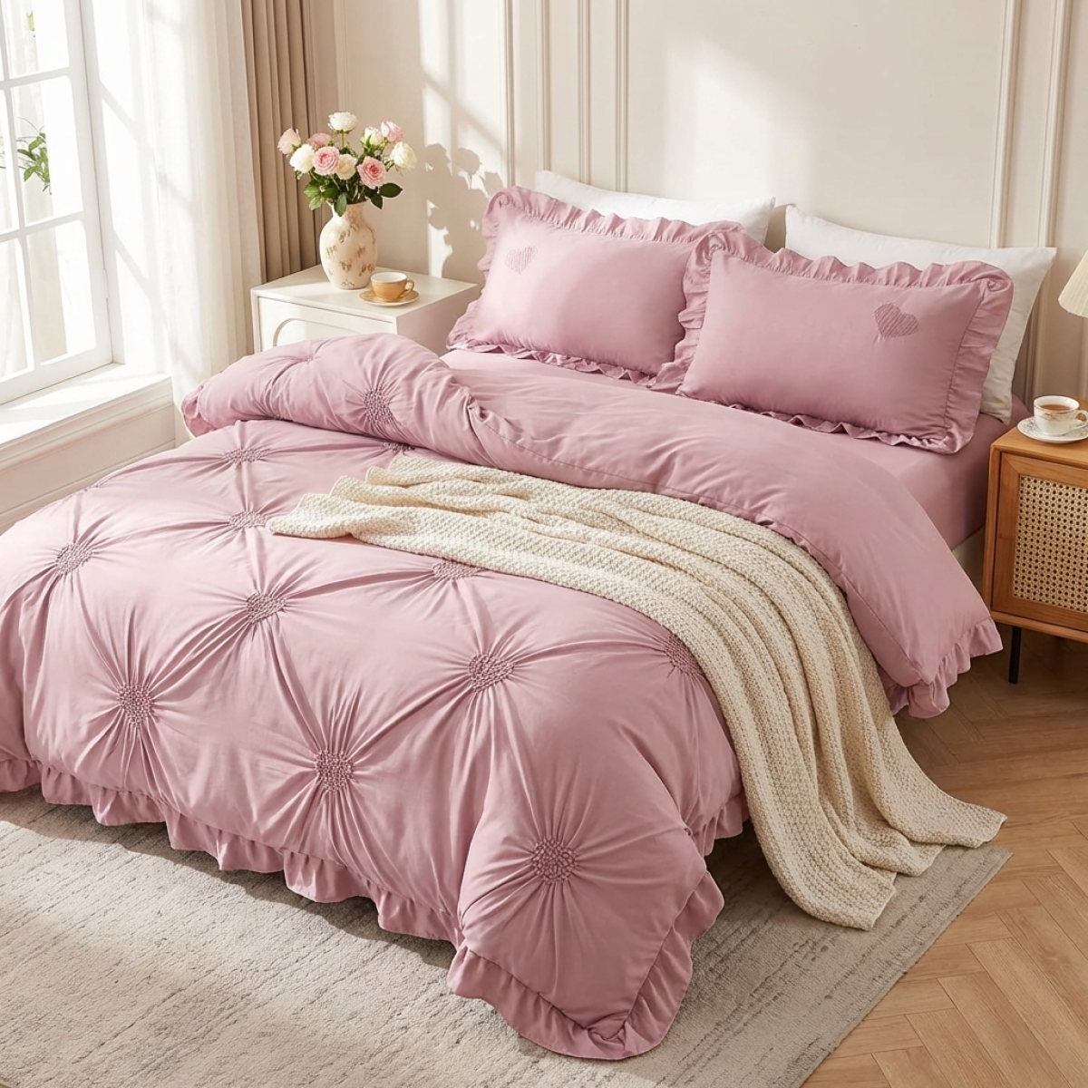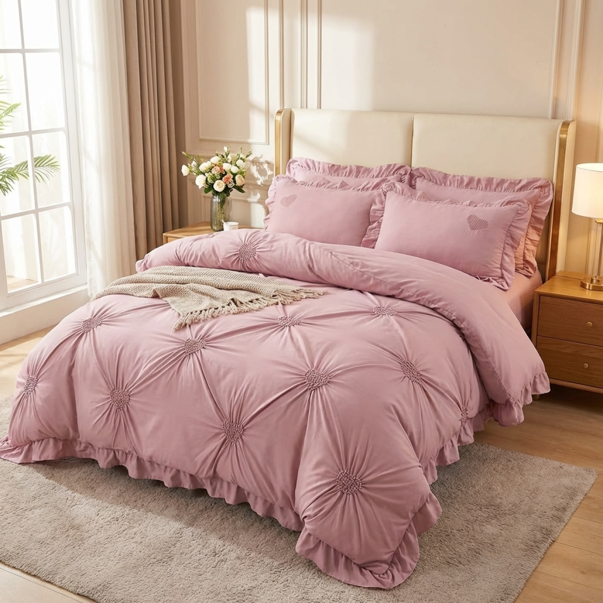 Луксозен спален комплект чаршафи от 4 части, Хармония - Пепел от рози