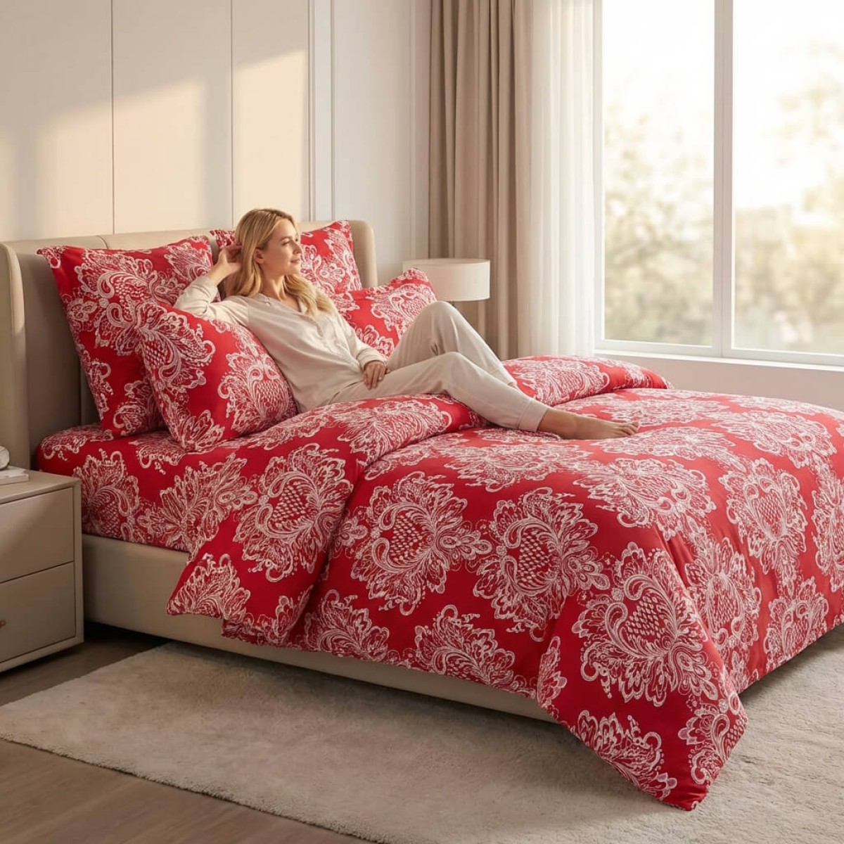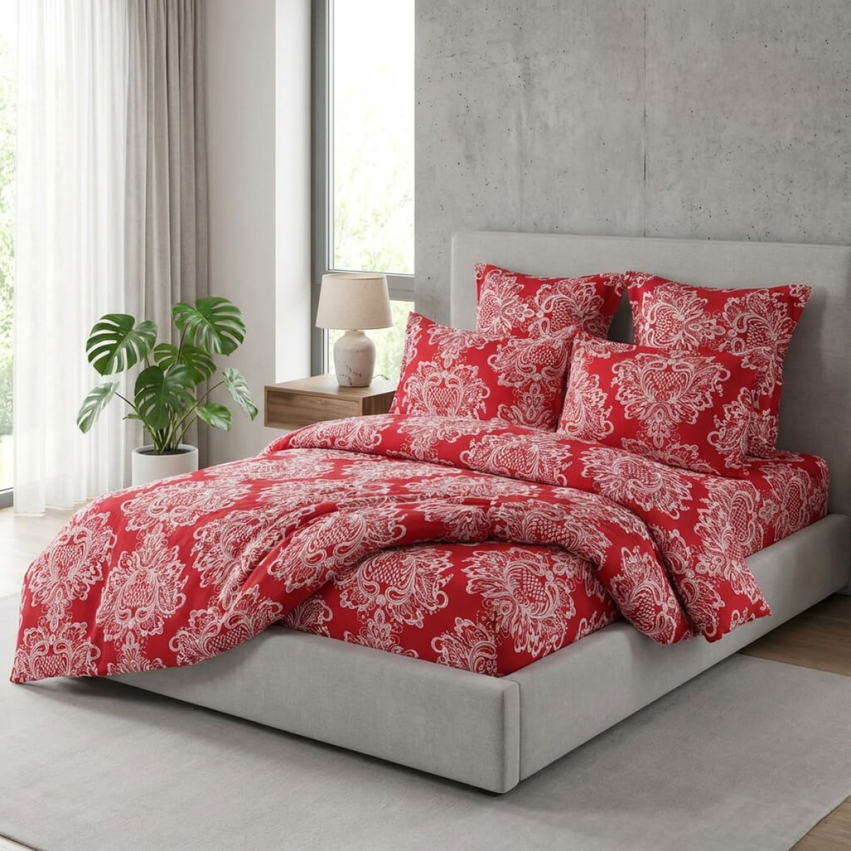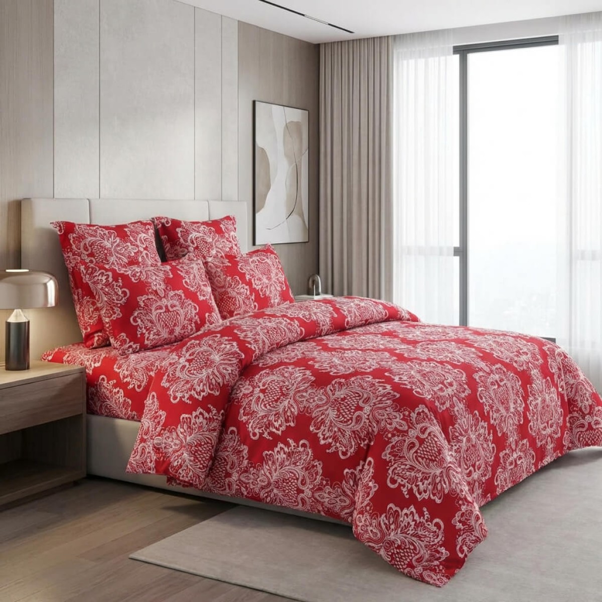Луксозен спален комплект чаршафи от 6 части, Бродерия - Рубинен сън