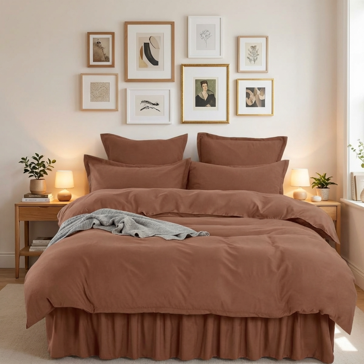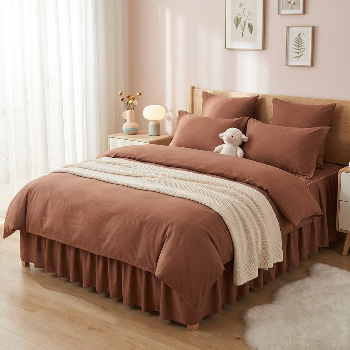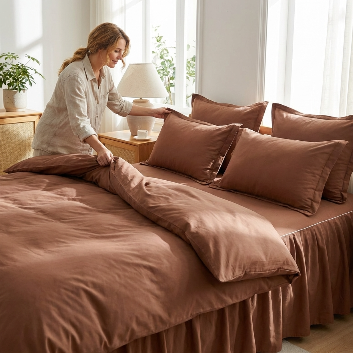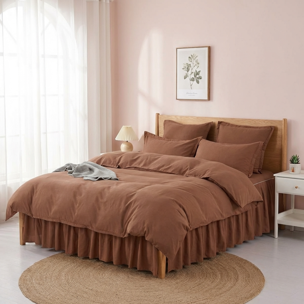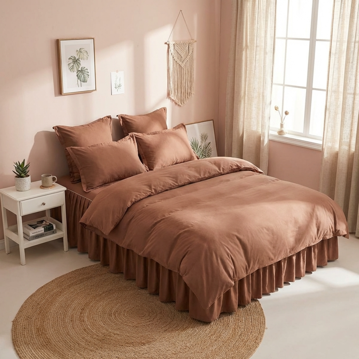 Луксозен спален комплект чаршафи от 6 части с драперия, Тоскани - Карамел