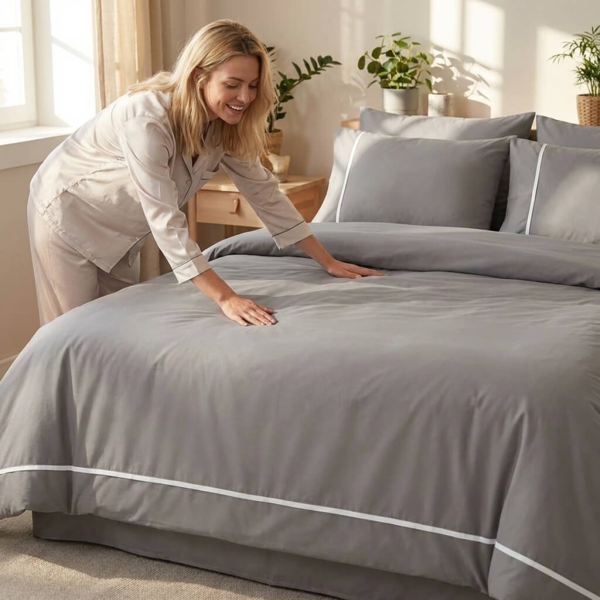 Създадена с внимание към детайла, тази материя предлага луксозно усещане и невероятна издръжливост. Тя осигурява мекота и комфорт при допир, като същевременно остава устойчива на интензивна употреба. Благодарение на модерните техники на изработка, чаршафите не губят форма, свежест и цвят дори след стотици пранета, а усещането върху кожата остава деликатно и приятно.