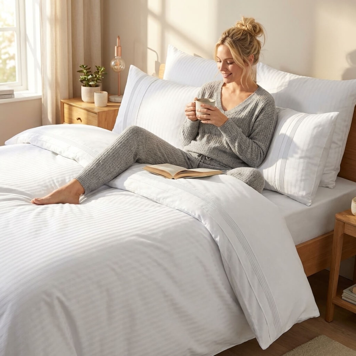 Създадена с внимание към детайла, тази материя предлага луксозно усещане и невероятна издръжливост. Тя осигурява мекота и комфорт при допир, като същевременно остава устойчива на интензивна употреба. Благодарение на модерните техники на изработка, чаршафите не губят форма, свежест и цвят дори след стотици пранета, а усещането върху кожата остава деликатно и приятно.