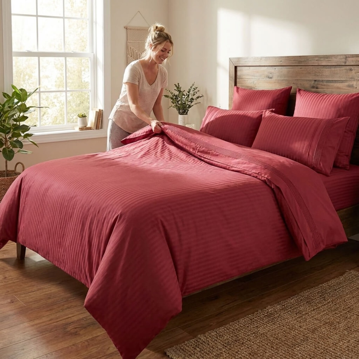 Създадена с внимание към детайла, тази материя предлага луксозно усещане и невероятна издръжливост. Тя осигурява мекота и комфорт при допир, като същевременно остава устойчива на интензивна употреба. Благодарение на модерните техники на изработка, чаршафите не губят форма, свежест и цвят дори след стотици пранета, а усещането върху кожата остава деликатно и приятно.