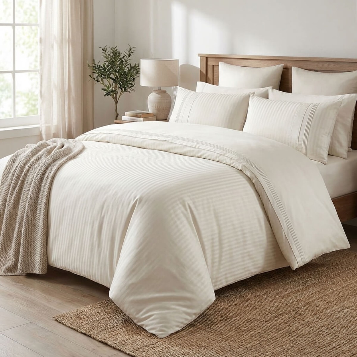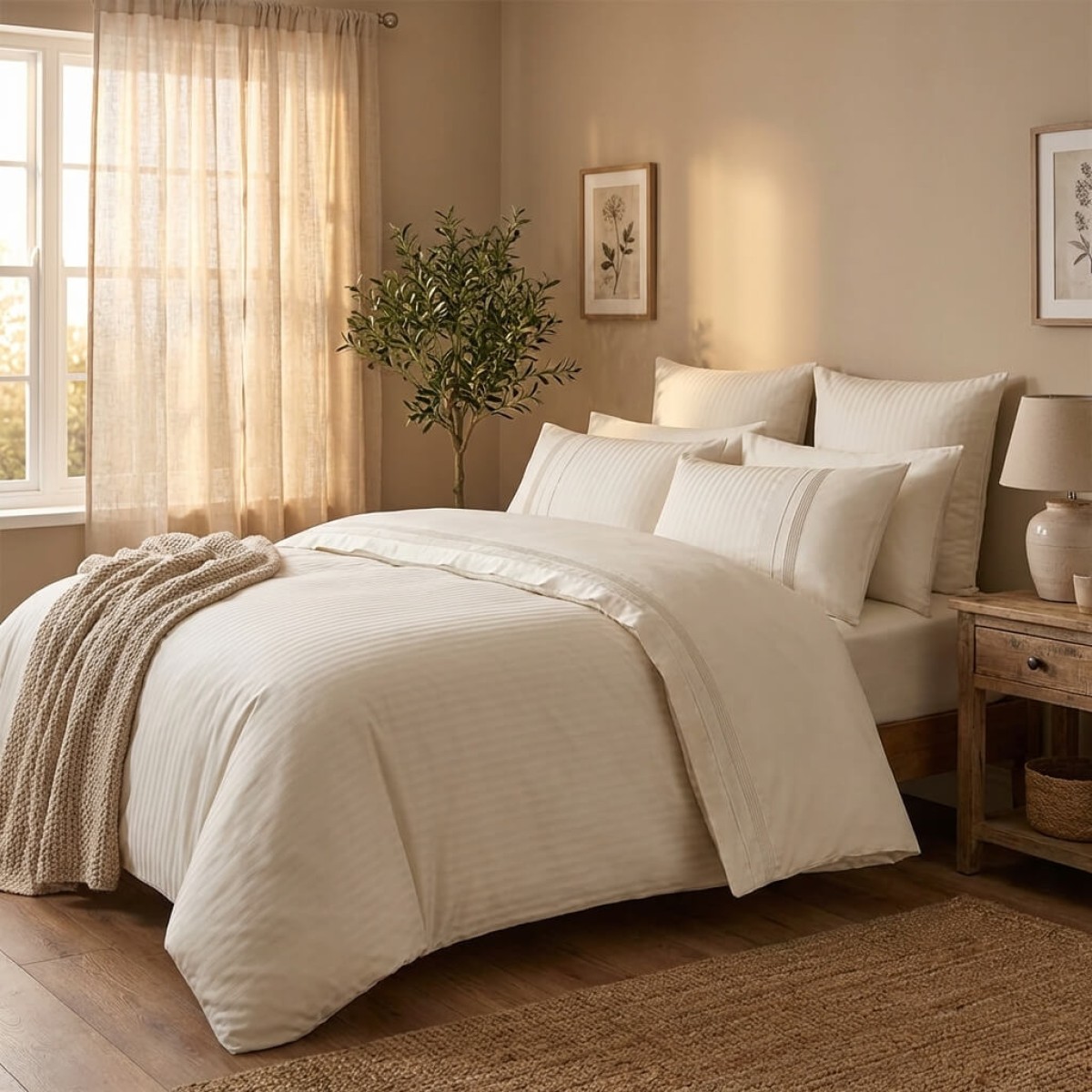 Създадена с внимание към детайла, тази материя предлага луксозно усещане и невероятна издръжливост. Тя осигурява мекота и комфорт при допир, като същевременно остава устойчива на интензивна употреба. Благодарение на модерните техники на изработка, чаршафите не губят форма, свежест и цвят дори след стотици пранета, а усещането върху кожата остава деликатно и приятно.